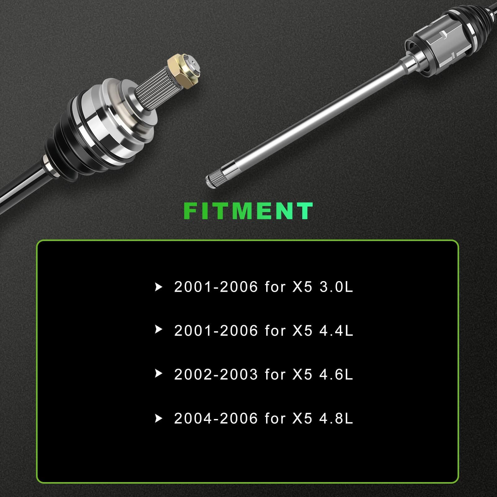 Eje de transmisión delantero izquierdo de alta calidad de la marca SCITOO para los modelos X5 3.0L, 4.4L y 4.8L fabricados entre los años 2001 y 2006. Este eje de transmisión está diseñado para proporcionar excelente estabilidad al vehículo, con certificaciones QS 9000 e ISO 9002 que garantizan su calidad y rendimiento. Las botas de neopreno de alta calidad ofrecen resistencia y durabilidad, evitando roturas y proporcionando un rendimiento excepcional. Antes de realizar la compra, verifique cuidadosamente la imagen, el número de referencia OE y la información de ajuste para asegurarse de que este sea el producto correcto para su vehículo.