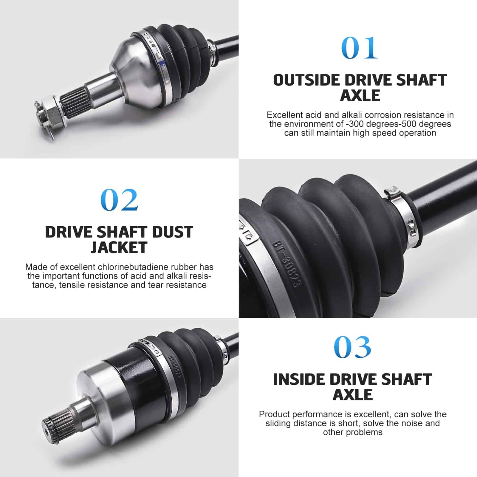 Eje de transmisión trasero izquierdo CV compatible con Can-Am Outlander 570 650 850 T 1000R Max 2019 2020 2021 Renegade 570 650 850 1000R Renegade T 1000 Renegade T 650 OEM 705502710. Aplicación: Este eje de transmisión trasero izquierdo es compatible con una variedad de modelos Can-Am, incluidos Outlander 570, 650, 850, 1000R, Outlander T 570, 650, 1000, Outlander Max 1000, Outlander Max 1000R, Renegade 570, 650, 850, 1000R, Renegade T 650, 1000. Diseño resistente: Fabricado con acero cromoly 4340 de alta calidad para una fuerza y durabilidad superiores. Las juntas CV cuentan con ángulos de articulación elevados y están rellenas con grasa sintética para mantenerse frescas y funcionar sin problemas. Pruebas de campo: Todos los componentes de los ejes de transmisión KLV están mecanizados con precisión para garantizar una articulación y desplazamiento suaves. Evita la fricción que puede generar calor excesivo y daños. Servicio al cliente: Ofrecemos un servicio de 12 meses con una respuesta rápida de 24 horas. ¡Si tiene alguna pregunta sobre el eje, no dude en contactarnos para obtener más información y asistencia!