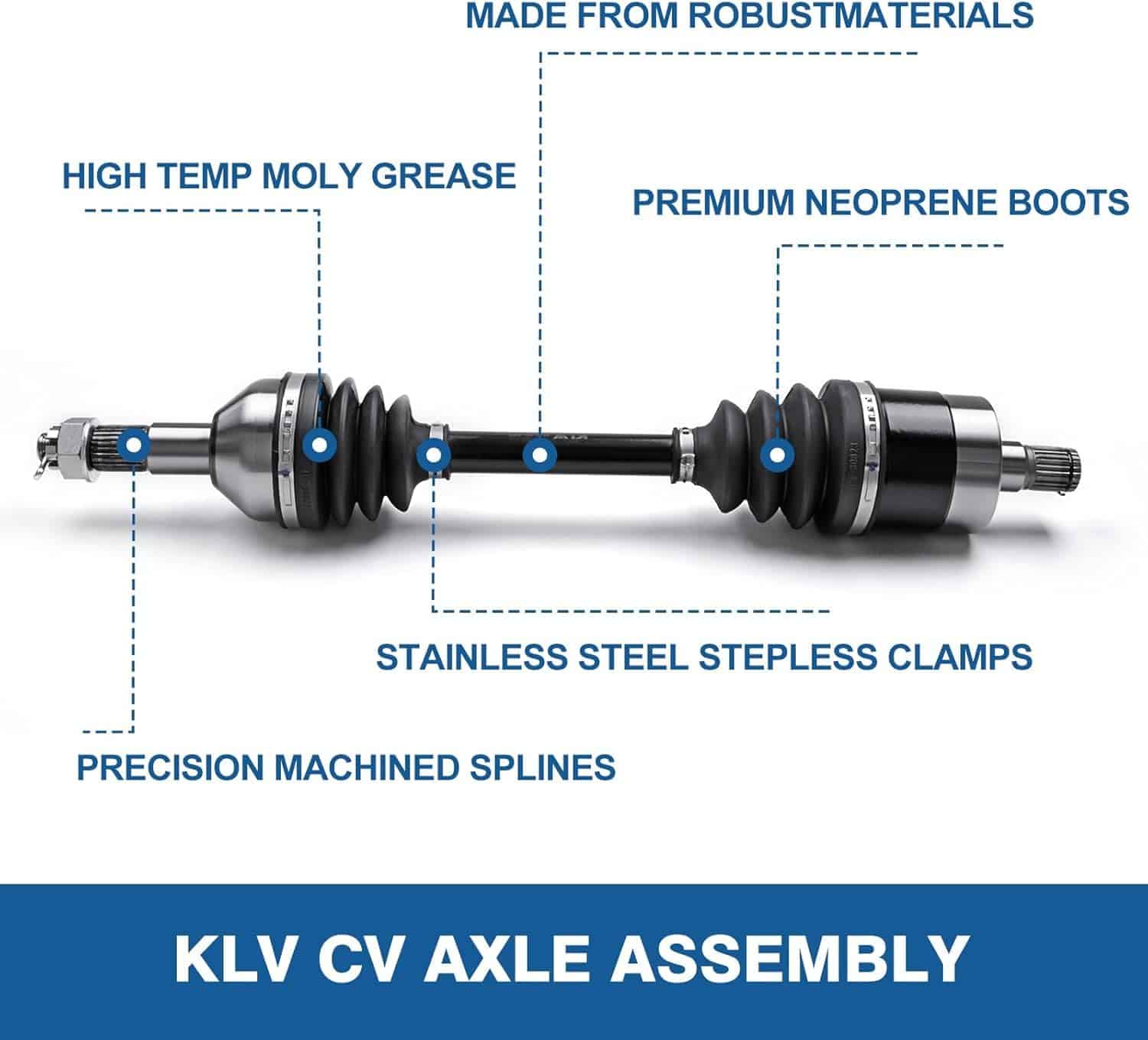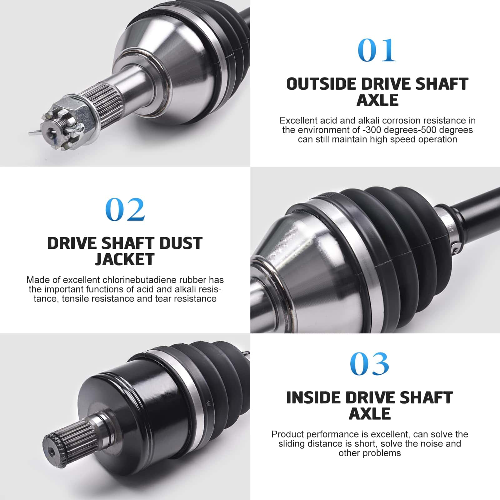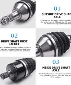 2. Diseño Superior: El Eje de Alta Resistencia para Powersports está hecho con acero 4340 cromoly resistente de un extremo a otro para una fuerza y durabilidad superiores. Las juntas CV cuentan con ángulos de articulación altos y están llenas de grasa sintética para mantenerse frescas.