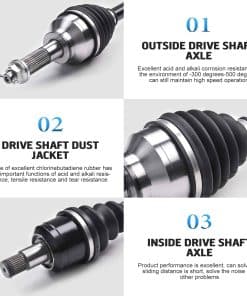 1. Aplicación: eje de transmisión trasero, eje CV, eje del lado del pasajero, conjunto del eje de transmisión compatible con vehículos selectos, verifique los detalles de ajuste con el verificador de ajuste anterior: Kawasaki 2015 2016 2017 2018 2019 2020 2021 Mule Pro LR.