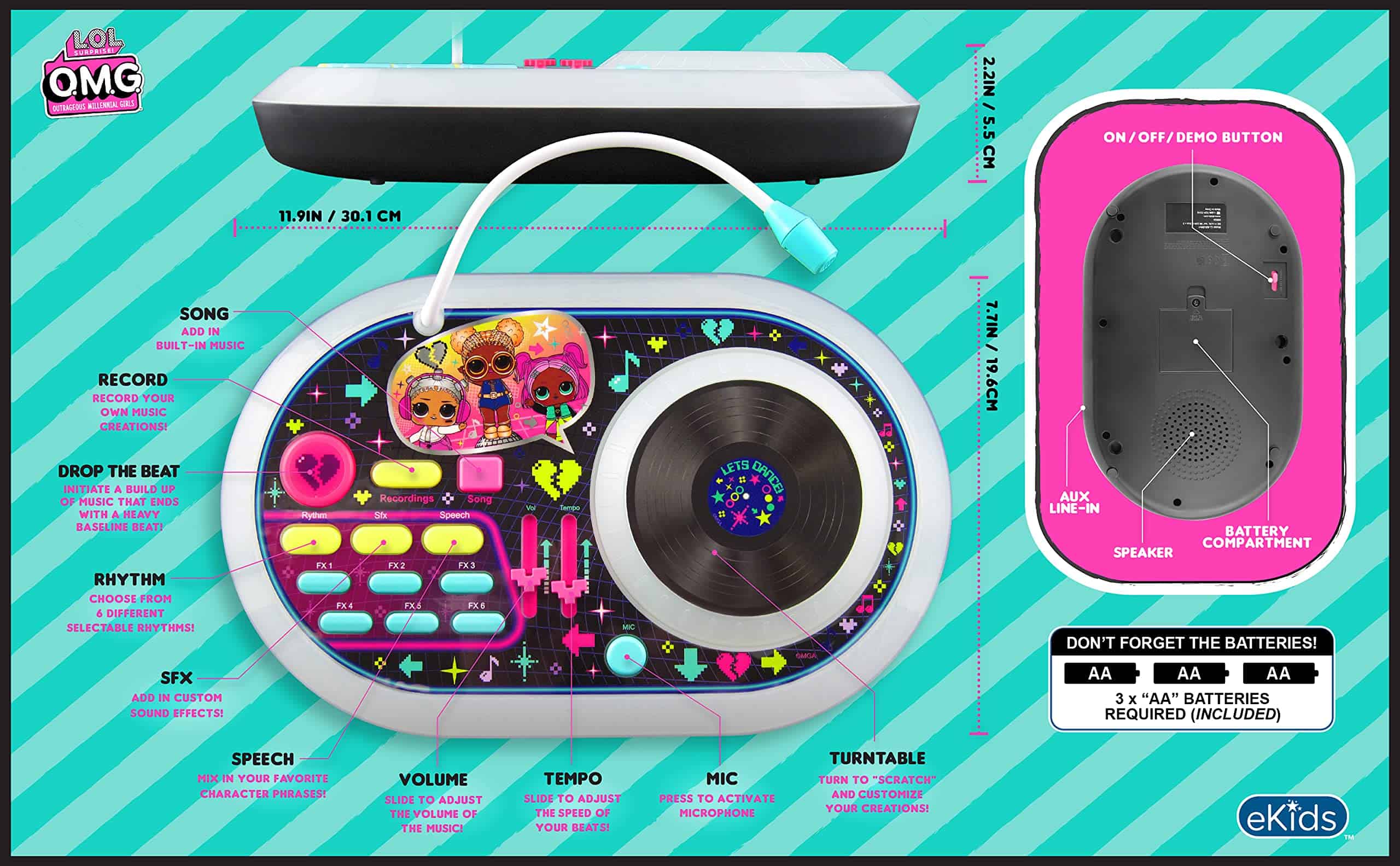 eKids LOL Surprise DJ Party Mixer Turntable Toy con