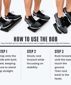 THE BOB desarrolla simultáneamente equilibrio, flexibilidad, fuerza, salto vertical y velocidad. Para estirar, fortalecer y mejorar la musculatura de las piernas y pantorrillas, a la mayoría de las personas no les gusta hacer ejercicios. Podrás estirar los músculos de Aquiles, tibiales y gemelos a lugares a los que nunca han llegado antes.