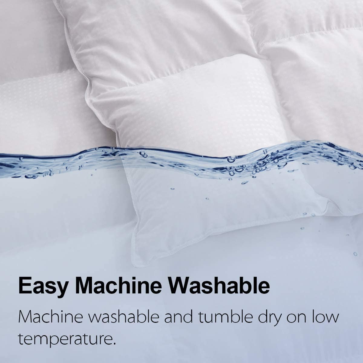 5. Cuidado Fácil y Conveniente-Lavar a Máquina en Ciclo Suave con Agua Fría, Secar al Aire o Secar en Secadora a Baja Temperatura cuando sea necesario, y la esponjosidad del edredón se recuperará por completo.