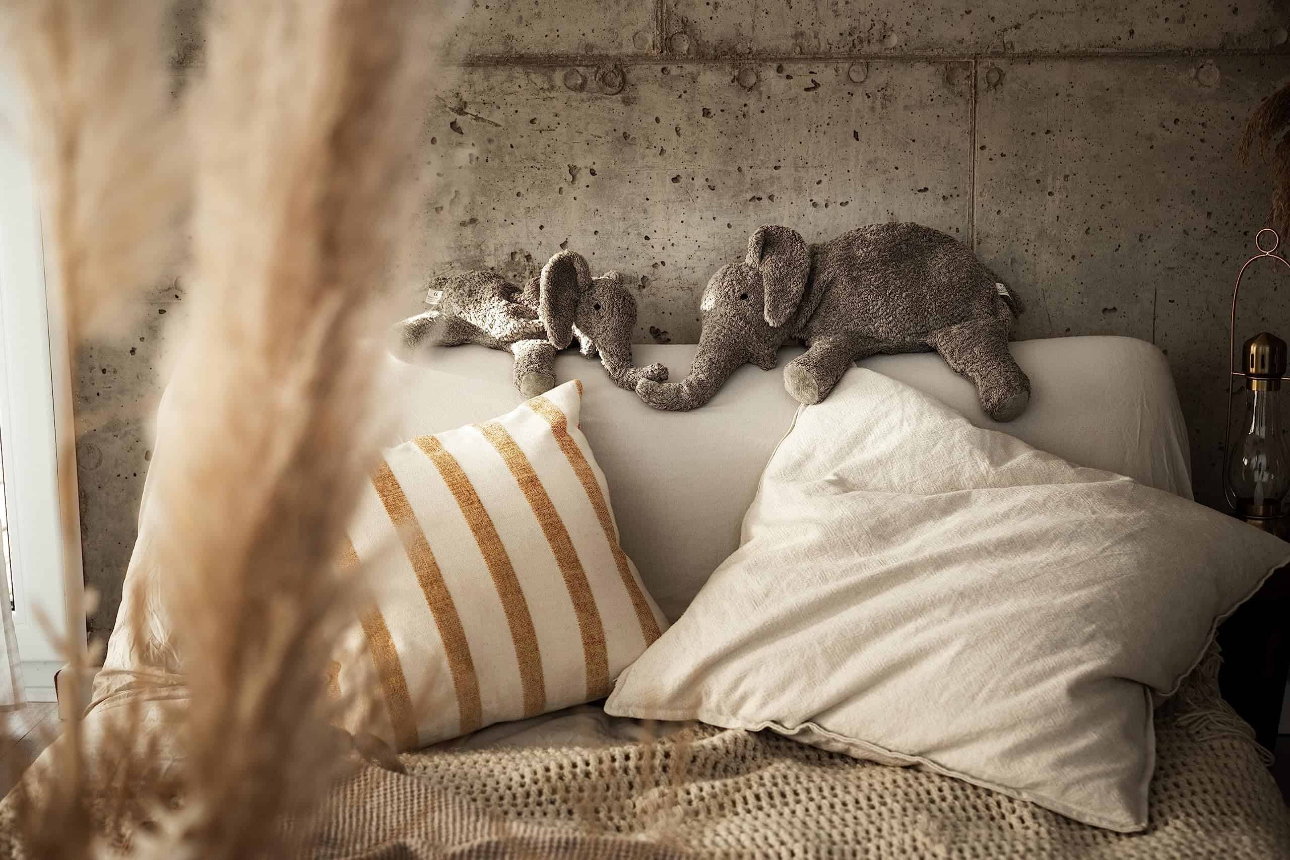 Nuestros «Animales Cariñosos» son juguetes ecológicos hechos a mano muy especiales. Es un peluche y una almohada cálida al mismo tiempo. El algodón orgánico los hace suaves y cariñosos. En el interior hay una almohada de algodón extraíble. Los animales grandes están rellenos de cáscaras de espelta orgánica, los pequeños están rellenos de huesos de cereza. De esta manera, el peluche se convierte en una almohada térmica. Los huesos de cereza también son adecuados para enfriarlo.