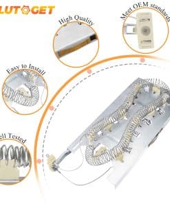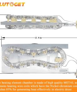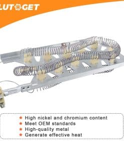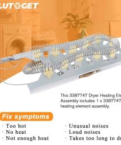El conjunto del elemento calefactor 3387747 incluye la carcasa con la bobina calefactora y aislantes. Este elemento calefactor está hecho de metal de alta calidad y tiene 5400W y 240V. Este elemento calefactor tiene terminales de 5/16». El elemento calefactor genera calor para secar la ropa. El paquete incluye: 1 x Elemento Calefactor de Secadora 3387747. Resuelve síntomas como no producir calor, tardar demasiado en secar o estar demasiado caliente. Fácil de instalar. Desconecte la alimentación de la secadora antes de instalar esta pieza. Use guantes de trabajo para proteger sus manos. Siga las instrucciones para una instalación sencilla.