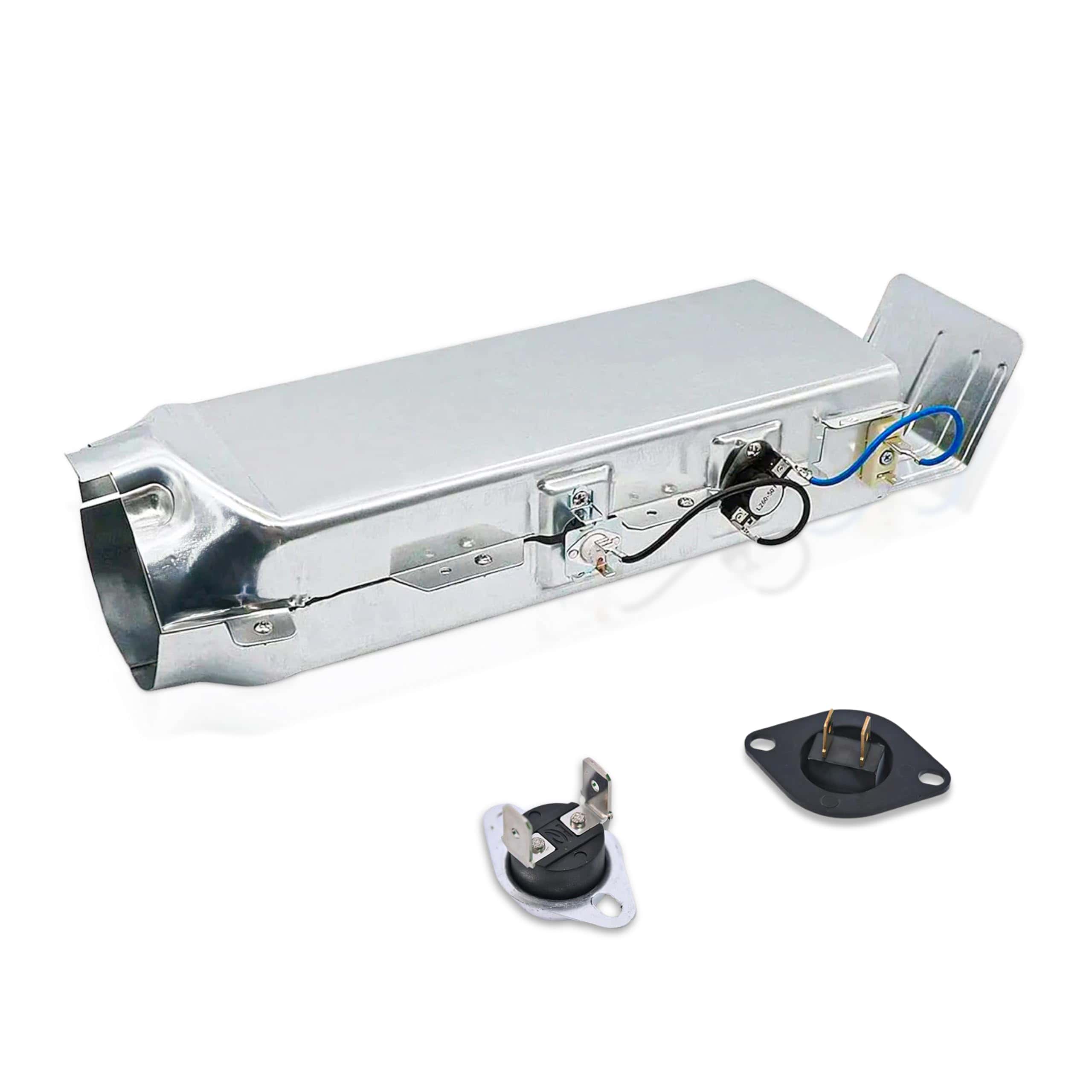 Esta solución todo en uno incluye un elemento calefactor de alta eficiencia, conducto de carcasa duradero, termostato de límite alto y fusible térmico esencial. Cada componente está diseñado para funcionar armónicamente, permitiéndote completar tu reparación de secadora de manera rápida y efectiva.