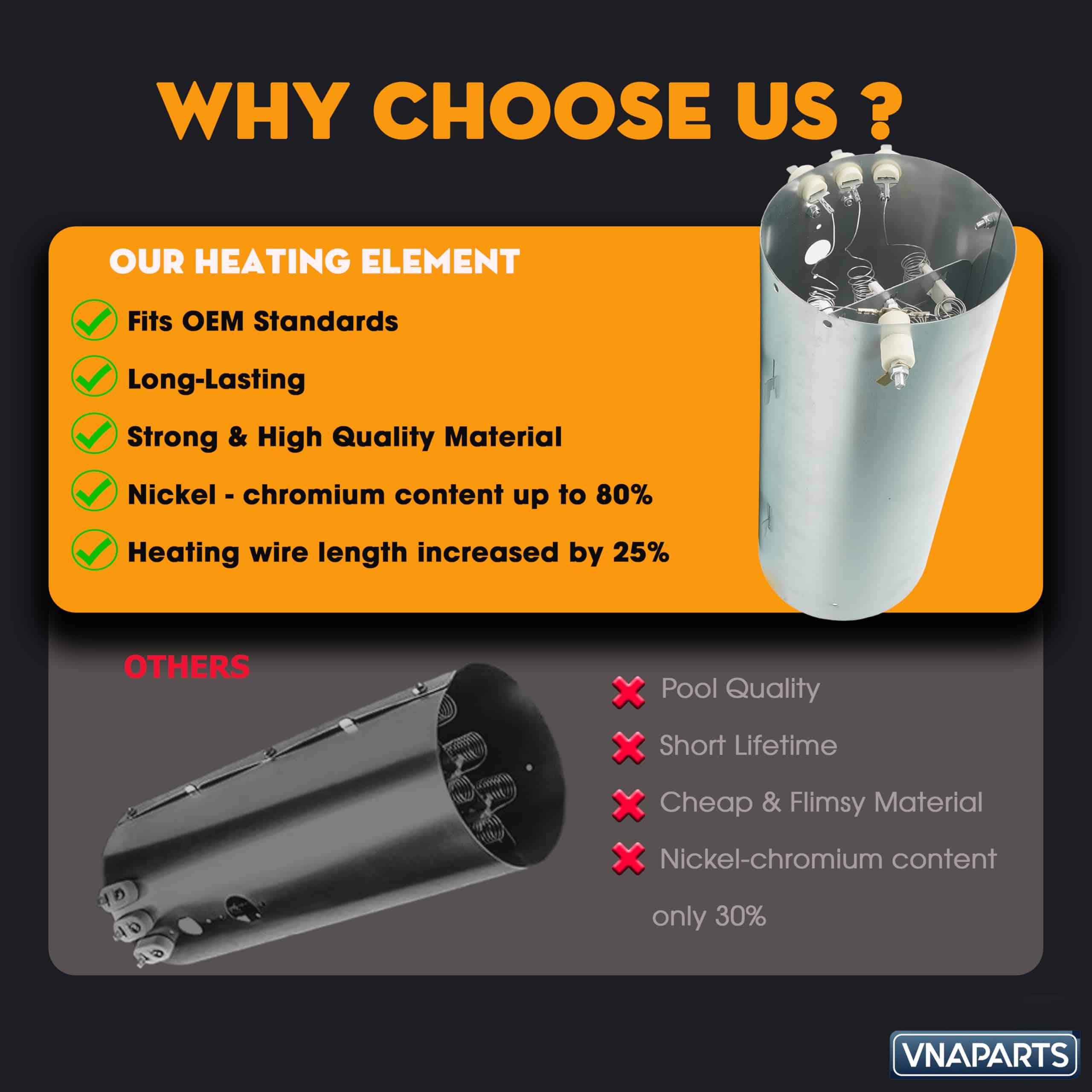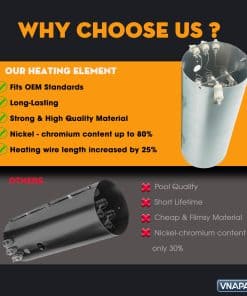 Construcción de Calidad Premium: Fabricado con materiales de primera calidad, nuestro elemento calefactor cuenta con un contenido de níquel-cromo del 97%, significativamente superior a las alternativas estándar. Esto mejora la resistencia al calor y la durabilidad, proporcionando una vida útil más larga y reduciendo la necesidad de reemplazos frecuentes. Con un aumento del 25% en la resistencia al reemplazo, disfrutará de un rendimiento sostenido.
