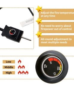 Elemento calefactor para ahumador eléctrico y parrilla con controlador de termostato ajustable de 1500 vatios. Diseño perfecto con forma curvada para un mejor calentamiento durante el uso. El diseño circundante del alambre calefactor permite que las astillas de madera se quemen más a fondo logrando un mejor efecto de ahumado. Hecho de acero inoxidable de alta calidad para una mayor seguridad operativa. La fuente de alimentación de control de temperatura está fabricada con cables de goma suave de alta calidad y certificación UL. Parámetros del elemento: Voltaje de funcionamiento: 110V; Potencia: 1500W; Rango de temperatura ajustable: 50F-500F (dependiendo del tamaño de su ahumador/parrilla). Ampliamente utilizado y compatible con varios modelos de ahumadores y parrillas en el mercado. Servicio postventa garantizado para una satisfacción del cliente del 100% y garantía de devolución de dinero. Contáctenos directamente ante cualquier pregunta y le brindaremos una respuesta satisfactoria en 12 horas. ¡Mejores deseos!