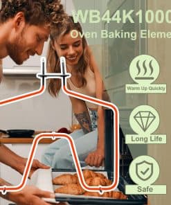 El elemento de horneado WB44k10005, reemplaza a GE, Hotpoint, Ken-more y otros rangos. Rated a 240 voltios y 2585 vatios para una excelente eficiencia de calentamiento, este elemento de horneado presenta un terminal macho .250 niquelado y un diseño de buje de silicona que resalta su construcción resistente. Fabricado en América del Norte para garantizar la mejor calidad, combina especificaciones de potencia óptimas con materiales duraderos para un rendimiento de horno consistente y confiable. Nuestro elemento de horneado WB44k10005 resuelve problemas comunes como la falta de calor, bajo rendimiento de calor y calentamiento desigual durante el horneado.