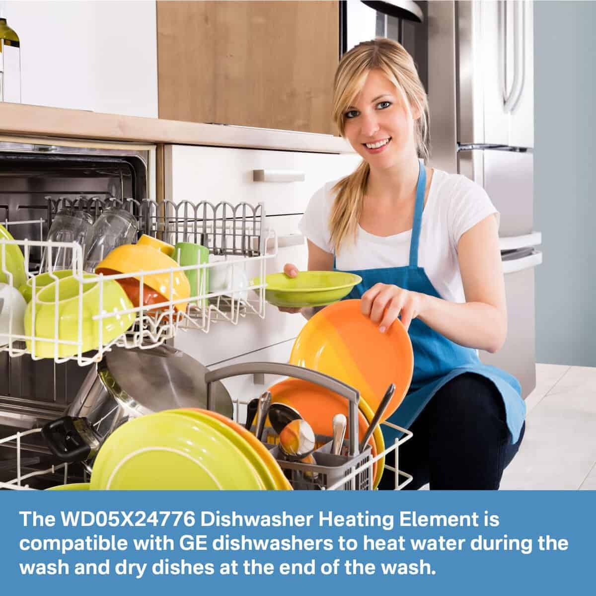 1. Incluye 1 x elemento calefactor WD05X24776 para lavavajillas, longitud de 17.2″, ancho de 22.4″. (2 arandelas de goma y 2 tuercas de aleación en el elemento calefactor) para un mejor sellado.