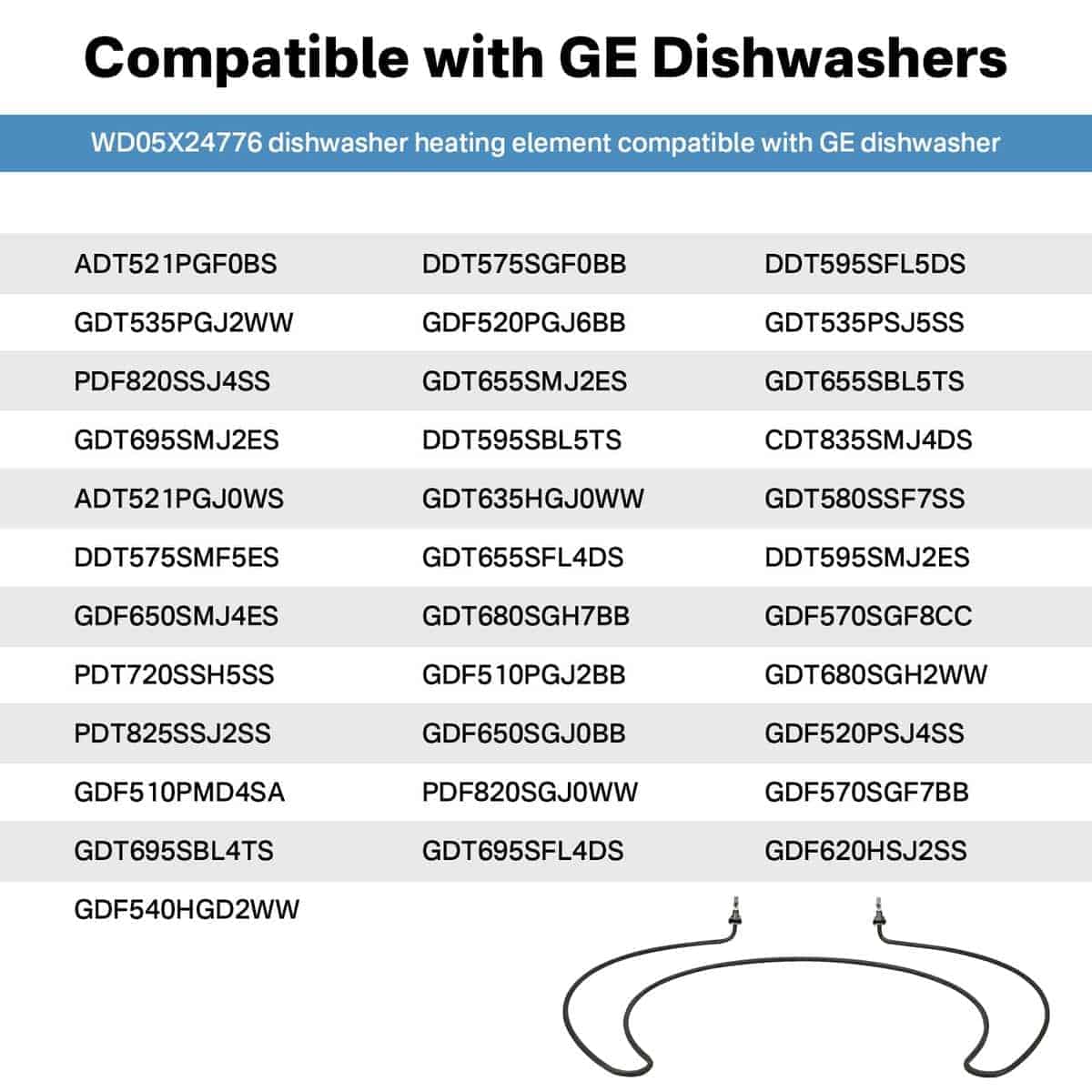 3. Ampliamente Compatible Reemplazo para lavavajillas GE WD05X24776, WD05X30818, WD05X24776, WD05X10015, WD05X21294, WD05X21716, WD05X23763, AP6783203, PS12582671, EAP12582671, PD00044594 y otros modelos de referencia que se pueden encontrar en la parte inferior de la página.