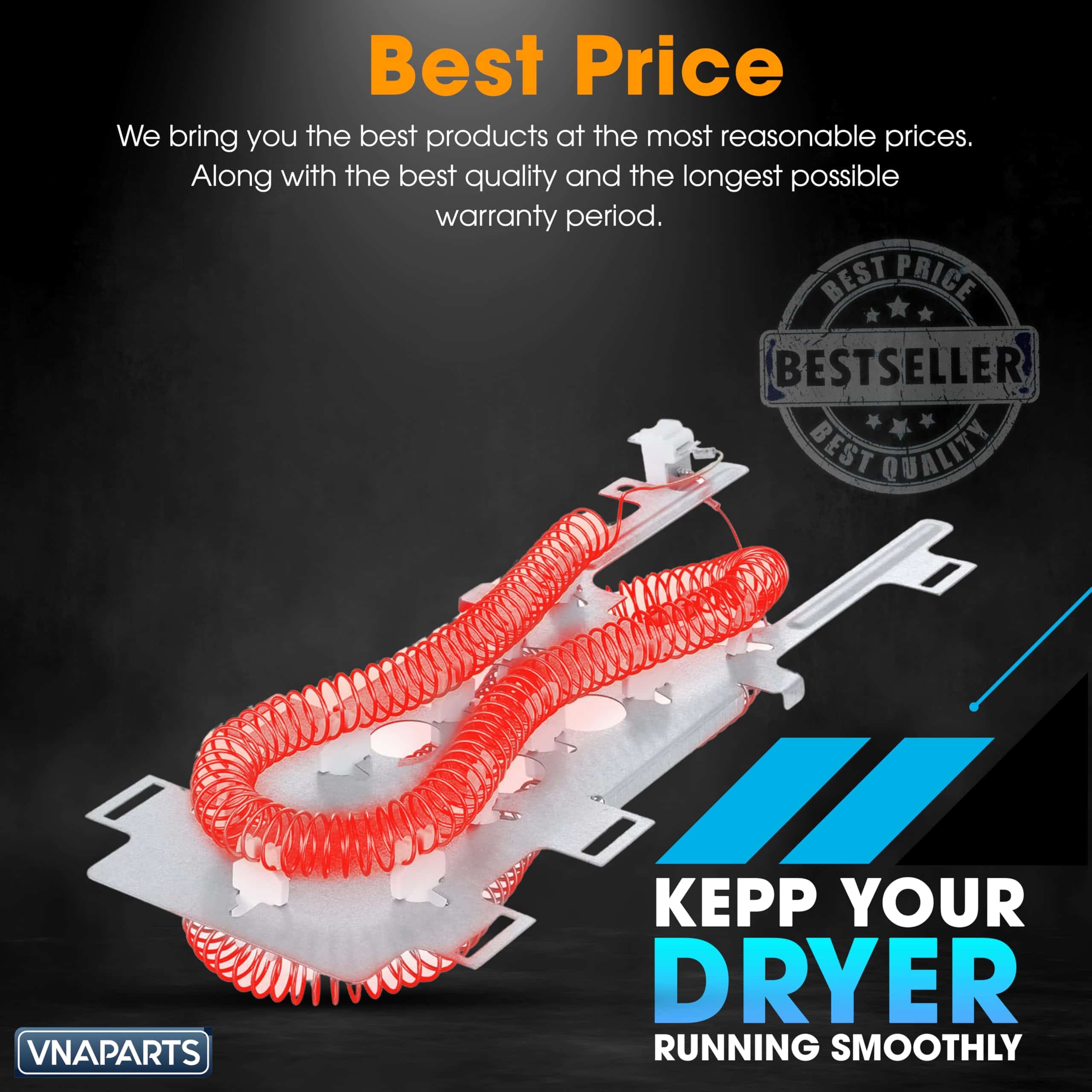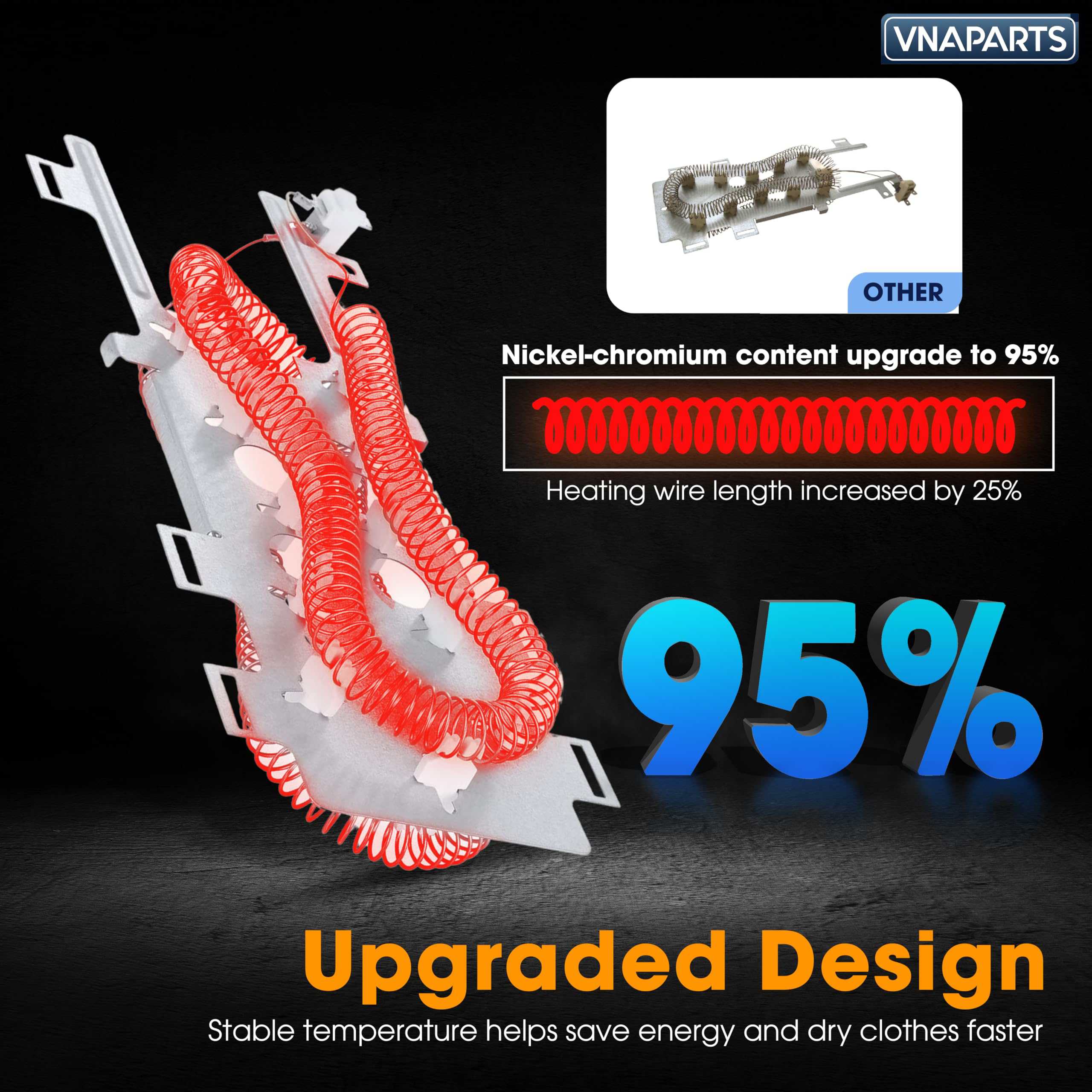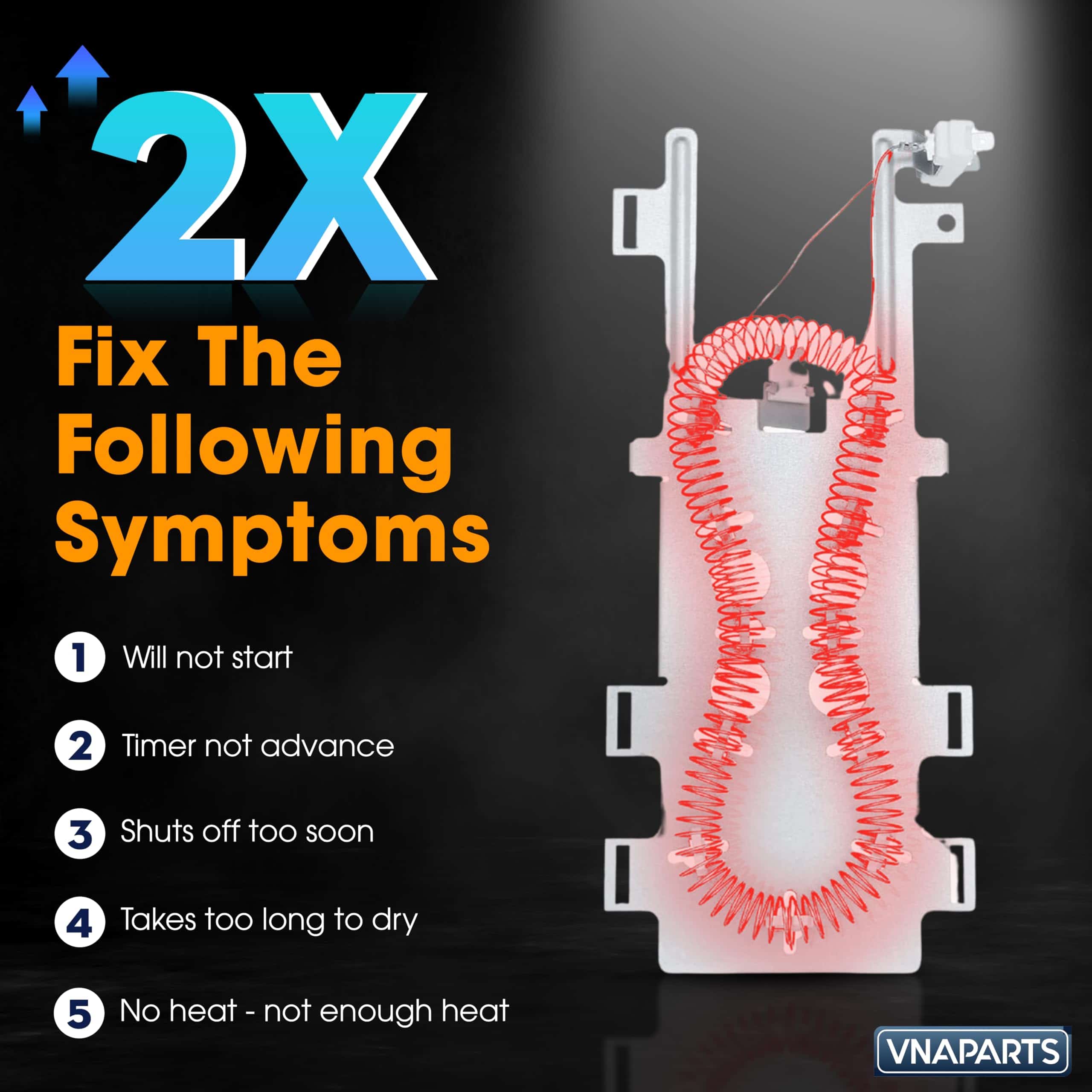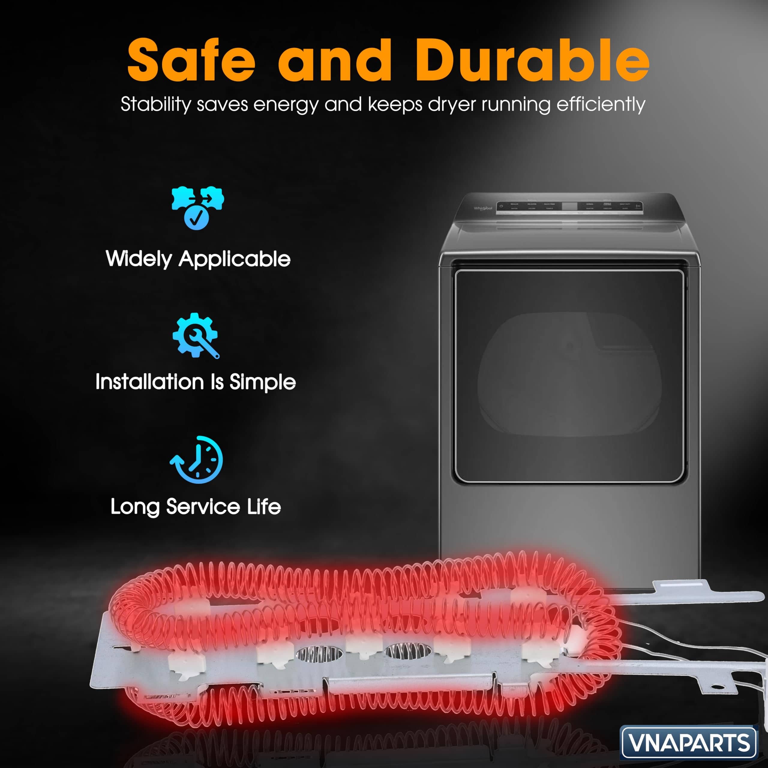 Mejora la eficiencia de tu secadora con nuestro completo Kit de Elemento Calefactor para Secadora, especialmente diseñado para una instalación sencilla y un rendimiento duradero. Este kit incluye un elemento calefactor premium, un kit de termostato 279816, un fusible de corte térmico 279973 y un fusible térmico 3392519. Con una potencia de 5400 vatios y diseñado para 240 voltios, este kit garantiza que tu secadora funcione de manera óptima, entregando calor confiable para ciclos de secado eficaces. Nuestro elemento calefactor está construido con metal de alta calidad y acero inoxidable, garantizando durabilidad y confiabilidad. Cada parte ha sido sometida a pruebas exhaustivas para un rendimiento superior, con bobinas de una aleación de níquel-cromo con un contenido notable de níquel del 85%. Esta construcción garantiza una resistencia excepcional al calor y al desgaste, previniendo la fusión incluso bajo temperaturas extremas y asegurando una eficacia de calentamiento a largo plazo. ¡Renueva la eficiencia de tu secadora con nuestro confiable Kit de Elemento Calefactor para Secadora y disfruta de ciclos de secado sin problemas para mantener tu rutina de lavandería funcionando sin contratiempos!