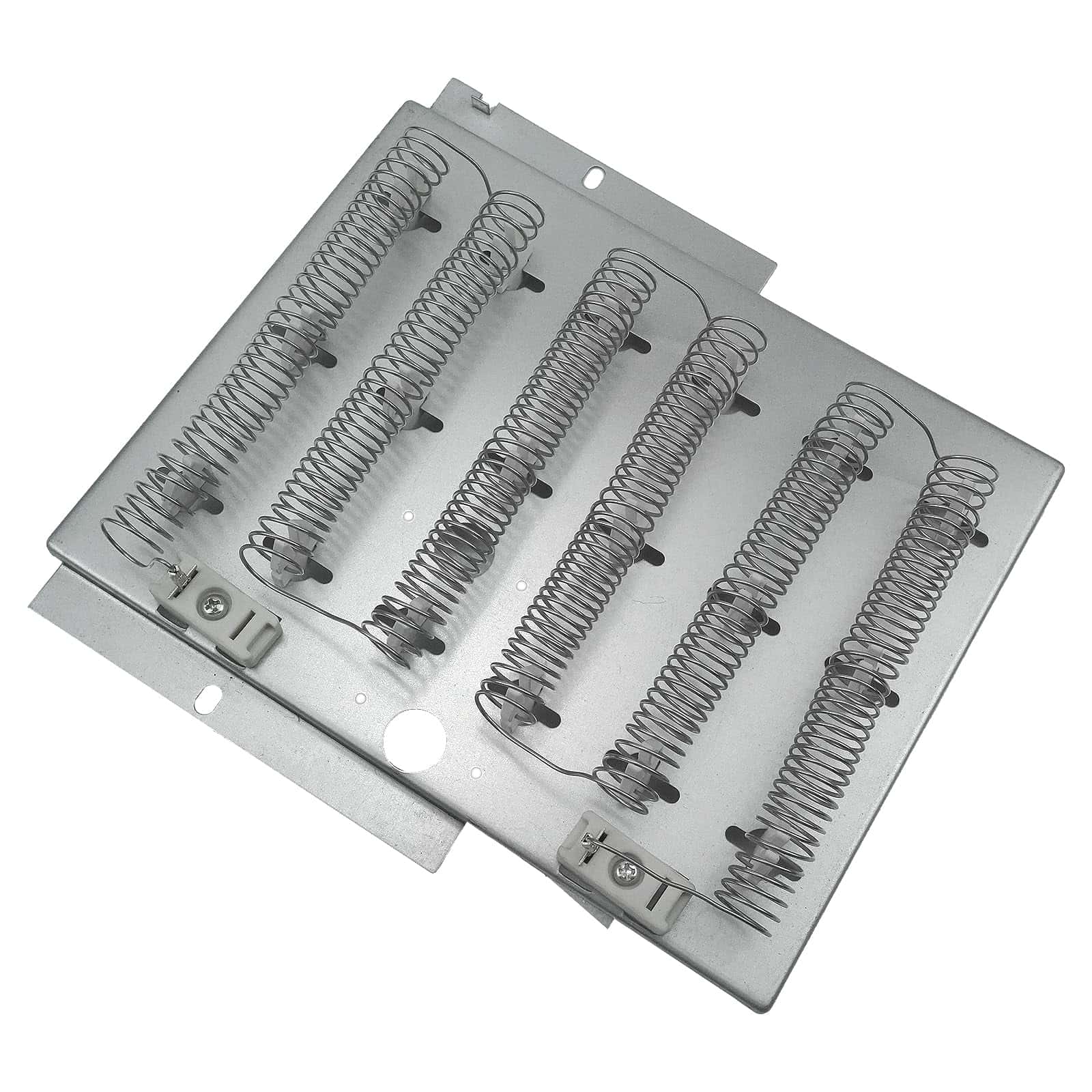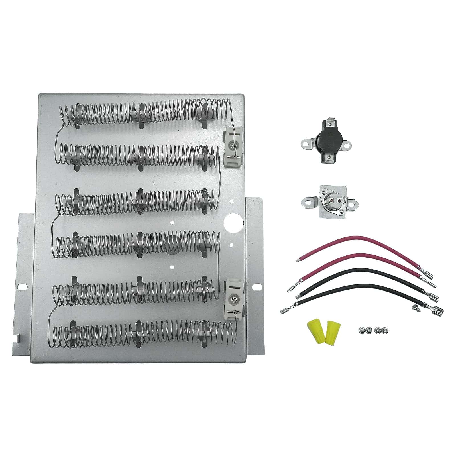 Compatibilidad: Apto para modelos de secadoras Whirlpool, Speed Queen, Amana, Admiral, Crosley, Magic Chef, Maytag. Número de Pieza de Repuesto 61928, 61929, 503978, Y503978, 510329, 510329p, 503404, R0610067, 56047, 56179, 56176, 964p3, WPY503978, 5-3978, 14218929 Pasos de Instalación: 1. Antes de comenzar el mantenimiento, desconecte la secadora 2. Por favor, use guantes aislantes para operar 3. Después de reemplazar, mantenga alejados de la secadora a niños y ancianos 4. Limpie la ventilación de la unidad calefactora y la acumulación en la parte inferior de la secadora a tiempo Nota: Este Elemento Calentador de Secadora no es una pieza original, la mención de marcas y cualquier designación de modelo relacionada anteriormente es solo con el propósito de demostrar compatibilidad.