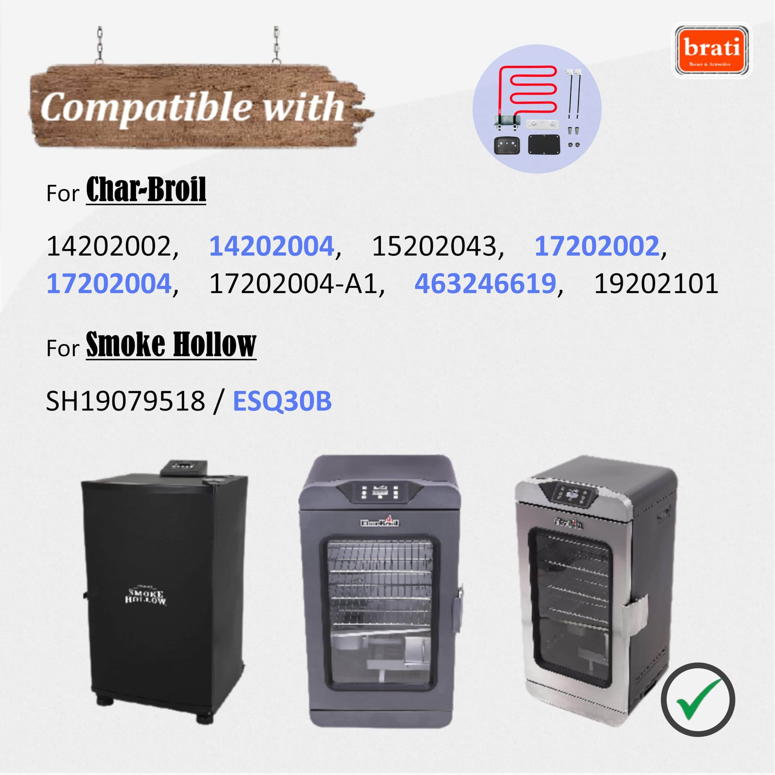 2. Compatible con modelos de ahumadores Masterbuilt: 20070312, 20070213, 20071514, 20076314, 20072912, 20071414, 20076514, 20072112, 20076414, 20072415, 20079015, 20077615, 20077016, 20077915, 20072115, 20078715, 20076716, 20077815, 20071314, 20077515, 20078815, 20076816 Char-broil Digital 725 Electric Smoker 17202002, 17202004, 19202101 Smoke Hollow Modelo: SH19079518 / ESQ30B.