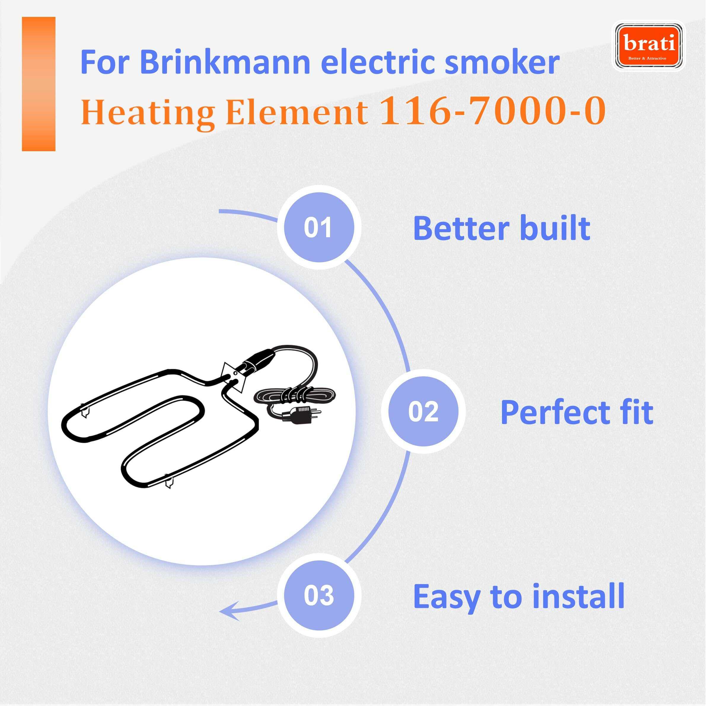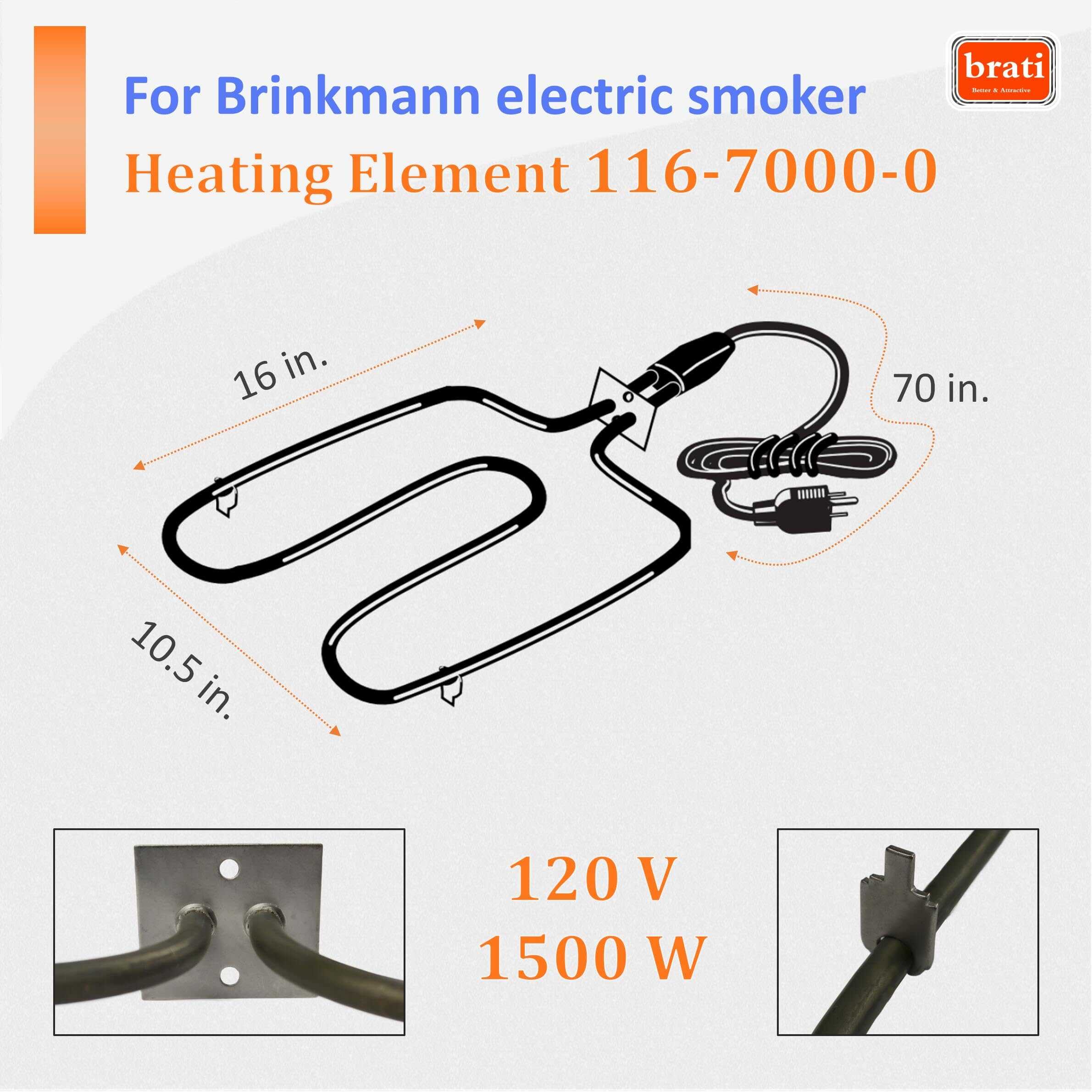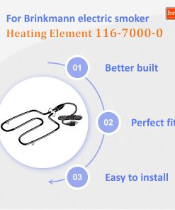 Elemento de Calefacción Eléctrico de Repuesto para Brinkmann 116-7000-0. Compatible con las parrillas eléctricas Brinkmann Gourmet Electric (810-7080-K), CookN CaJun (850-7005-0), Gourmet Electric (810-7080-0), Gourmet Electric (810-7090-S), Grill Zone Smoker (810-7080-T), SmokeN Grill (810-5290-5), SmokeN Grill (810-5290-C), y SmokeN Pit (810-5290-E). Elemento de Calefacción de 1500 vatios compatible con las parrillas eléctricas Brinkmann Gourmet, Smoke N Pit, Smoke N Grill, Cookin N Ca’Jun, y Grill Zone.