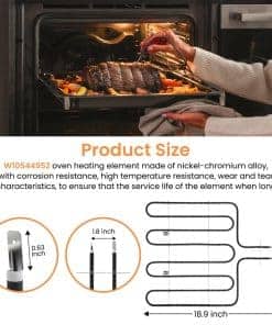Puedes reemplazar fácilmente los elementos viejos o defectuosos con nuestros elementos. Todo lo que necesitas es un destornillador Phillips, un destornillador, unos alicates de punta fina y un par de guantes de trabajo. Pon tu horno en marcha en poco tiempo. Reemplazo perfecto para el número de parte PS12578760 AP6333402 4591414 EAP12578760. Los elementos de horneado W10544952 resuelven problemas comunes como falta de calor, baja producción de calor y calentamiento desigual durante el proceso de horneado. Disfruta de platos perfectos en todo momento con nuestros elementos de calentamiento de alta calidad. El elemento del horno W11238400 está hecho de materiales premium para una durabilidad superior y un rendimiento duradero. Está diseñado para soportar altas temperaturas y un uso intensivo, así que olvídate de los reemplazos frecuentes y disfruta de una parrilla sin complicaciones.