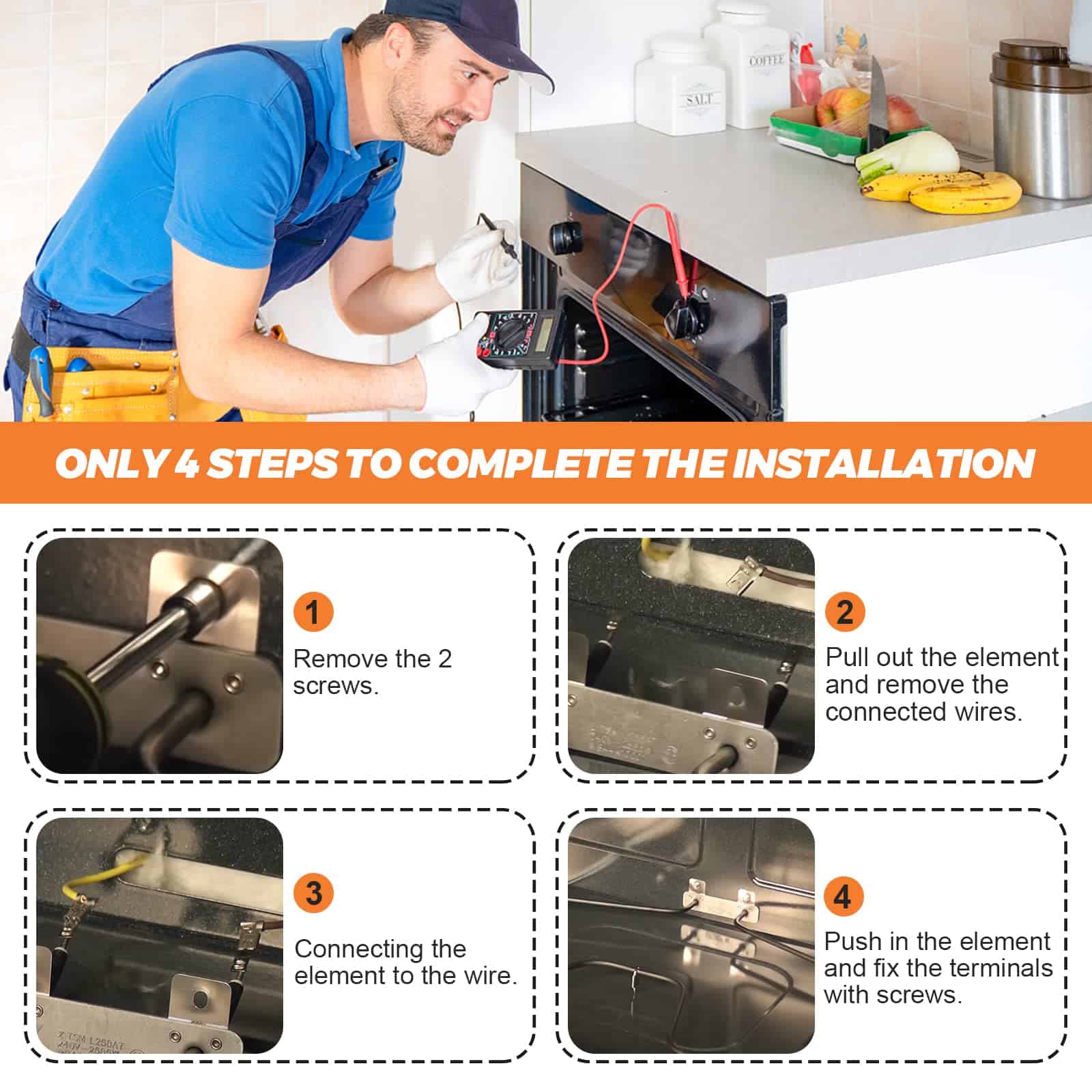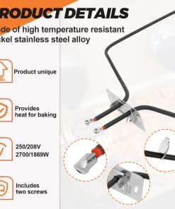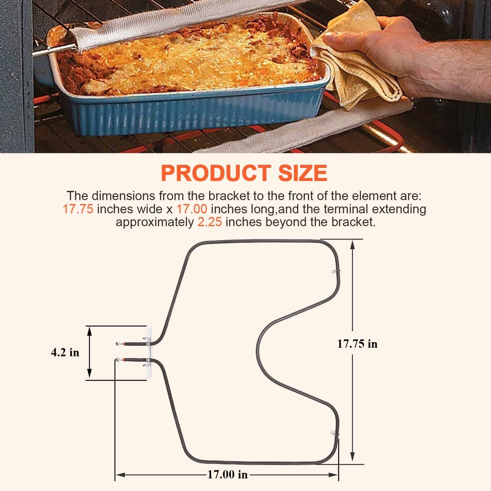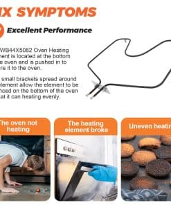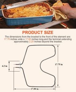 El paquete incluye: 1 Elemento de Horneado para Horno WB44X5082 DETALLE DEL PRODUCTO: Elemento de horneado para horno con terminales de tornillo. 18 1/4″ de ancho x 15 1/4″ de largo desde el soporte hasta el frente del elemento. Los terminales se extienden aproximadamente 2 1/4″ más allá del soporte. Encontrado en muchos rangos y hornos empotrados. CONSEJOS DE INSTALACIÓN: Corte la energía al horno en el panel de interruptores, compruebe con un multímetro para asegurarse de que la energía esté apagada. Desatornille la placa de respaldo en la parte trasera del horno, retire el antiguo elemento. Desconecte los cables del elemento (3), 2 negros en un lado del elemento y blanco en el otro lado, instale el nuevo elemento, reinstale la placa de montaje que sujeta el elemento en la parte trasera del horno. Limpie, vuelva a encender la energía y luego pruebe, funciona genial. REPARA LOS SIGUIENTES SÍNTOMAS: El elemento no se calienta Poca o ninguna calor cuando se hornea Horno no calienta de manera uniforme No se inicia FUNCIONA CON LA MAYORÍA DE LAS MARCAS: Reemplazo para horno GE Kenmore Hotpoint FUNCIONA CON LOS SIGUIENTES MODELOS: Hotpoint: RB525F1, RB525J1, RB525J2, RB525J3, RB525J4, RB525N1, RB525N2, RB525N3, GE: JBP90AS1, JBP90AS2, JBP90AV1, JBP90AV2, JBP90AW1, JBP90GS2, JBP90GV1, JBP90GV2, Kenmore: 99121-8 (1988), 99138 (1988), 99141 (1988), 99148 (1988), etc. DISTRIBUCIÓN DEL PRODUCTO: Este artículo se envía por , si tiene preguntas sobre el embalaje del producto o la entrega del producto, por favor contacte para resolver. NOTA: El nombre de la marca o la designación del modelo de este producto se hace únicamente con el propósito de demostrar la compatibilidad. ¡Gracias!