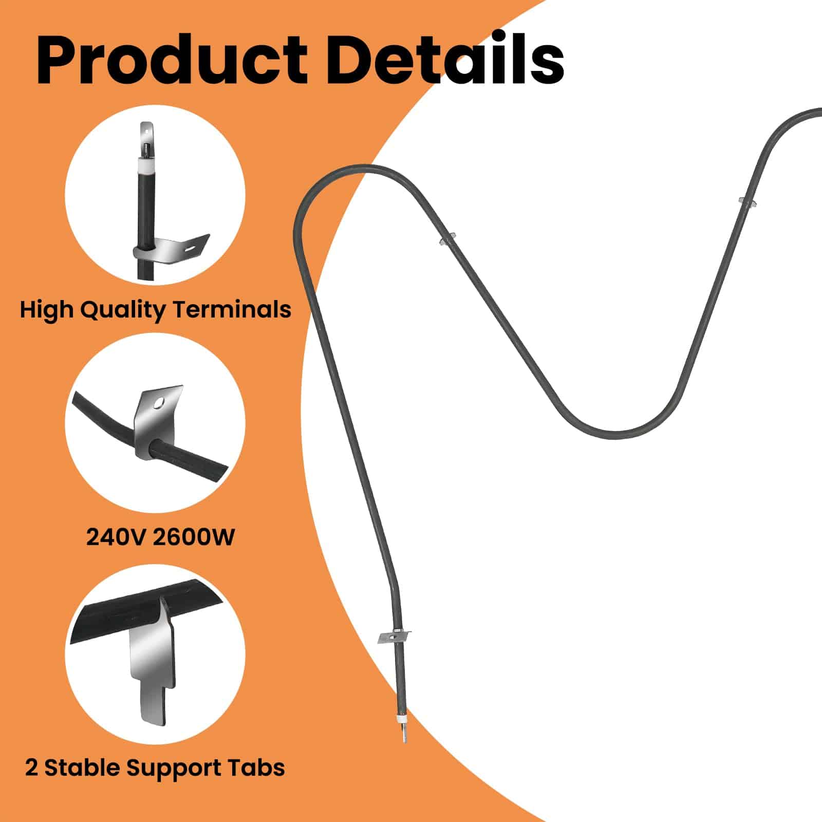 1. Elemento de hornear 316075103: Elemento de hornear para horno 316075103 que proporciona 2600W de potencia térmica potente, proporciona calor para hornear, garantizando un horneado eficiente y efectivo.