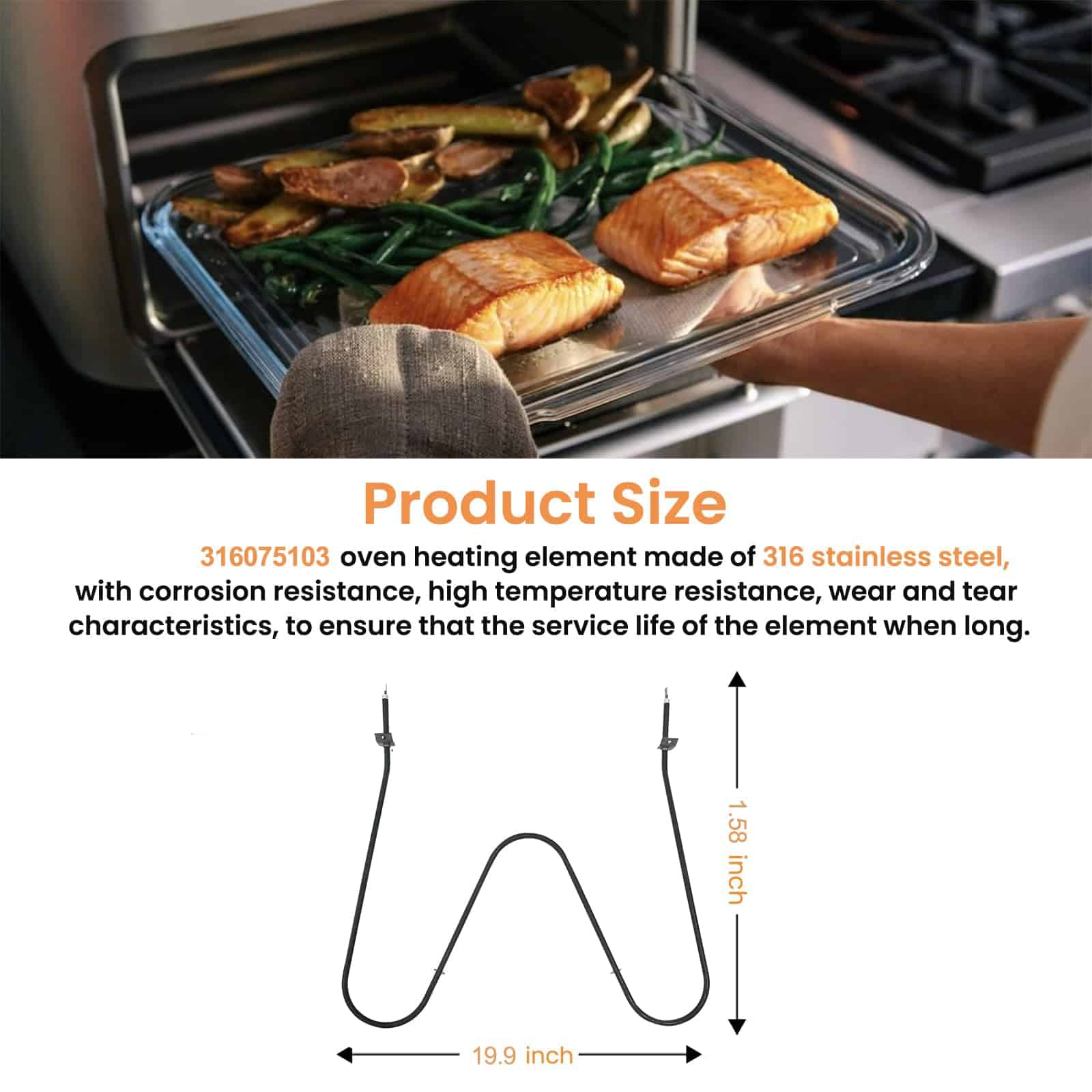 5. Material de calidad: Nuestro elemento de horneado 316075103 está hecho de material de alta calidad para una durabilidad superior y un rendimiento duradero. Está diseñado para soportar altas temperaturas y un uso intensivo, despídase de los reemplazos frecuentes y disfrute de un horneado sin problemas.