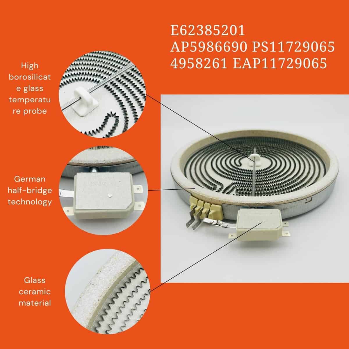 3. Seguro y confiable MEE62385201 DG47-00063A – La placa de la estufa está hecha de material de vidrio-cerámico de alta calidad para garantizar una baja conductividad térmica lateral y minimizar el riesgo de quemaduras, ya que solo la zona de cocción se calentará mientras que el área circundante permanecerá relativamente fría.
