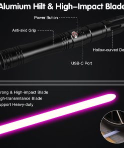 Para Duelos de Sables de Luz Reales – El sable de luz para duelos está pensado para cualquier fan de Star Wars que quiera experimentar la emoción de un verdadero duelo de sables de luz. La empuñadura de aluminio y la hoja resistente proporcionan un aspecto duradero y realista. Mientras tanto, 16 colores alternativos y 12 sonidos reales de películas hacen que la experiencia sea aún más inmersiva. Prepárate para sentirte como un verdadero Jedi o Lord Sith y experimenta el duelo definitivo con este sable de luz.