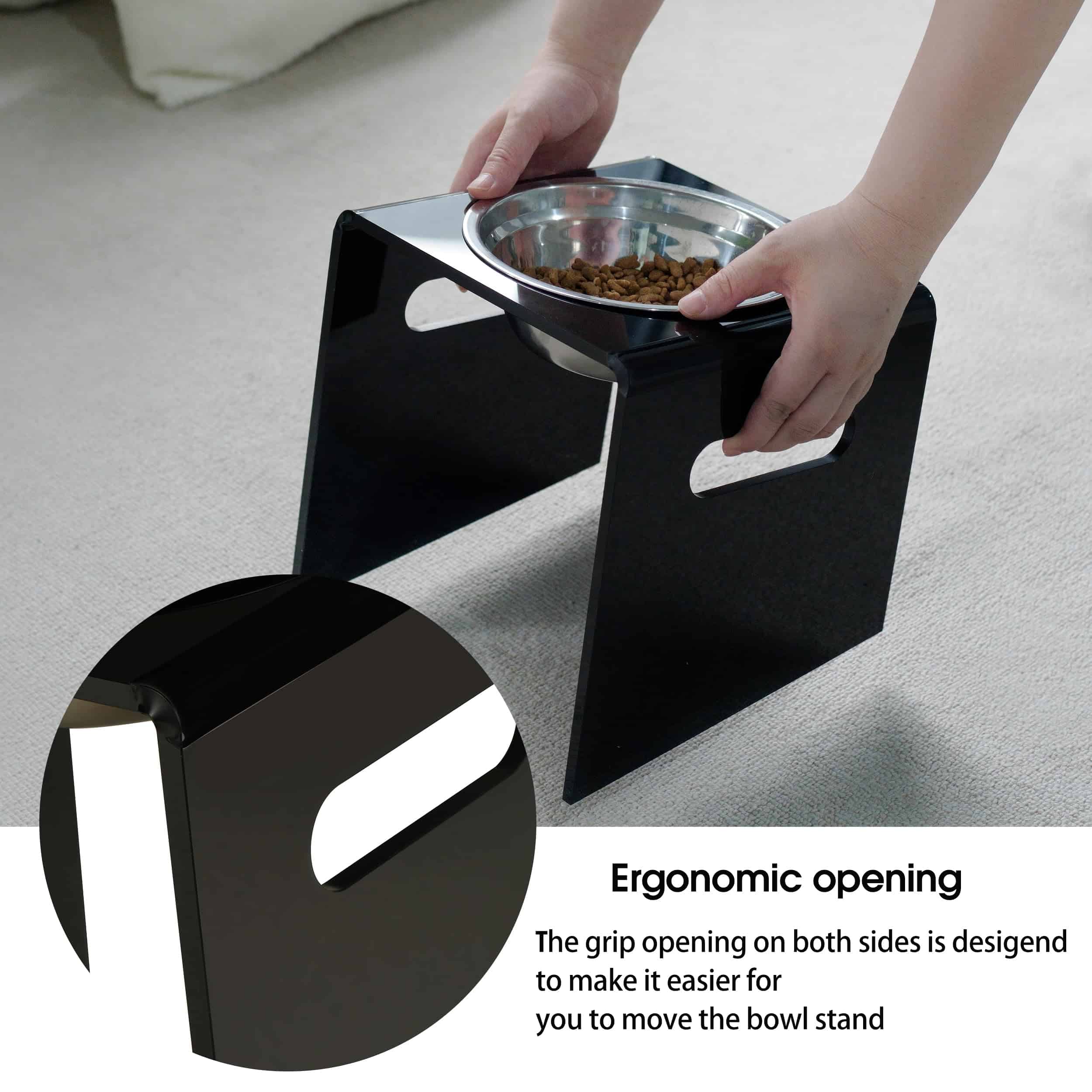 El diseño inclinado a 15 grados permite que su mascota coma cómodamente y reduce la hinchazón durante la alimentación. La parte inferior está equipada con 8 almohadillas antideslizantes, por lo que no tiene que preocuparse por volcarse o que la plataforma se mueva al alimentarse. La abertura de agarre en ambos lados está diseñada para que sea más fácil mover el soporte del tazón. Este juego de tazones de acrílico para perros o gatos está diseñado para gatos y cachorros, sus mascotas seguramente adorarán este comedero transparente para mascotas, también es el regalo perfecto para las familias con mascotas. Su satisfacción del 100% es nuestra meta, si tiene alguna pregunta, no dude en contactarnos de inmediato y le brindaremos toda la ayuda posible.