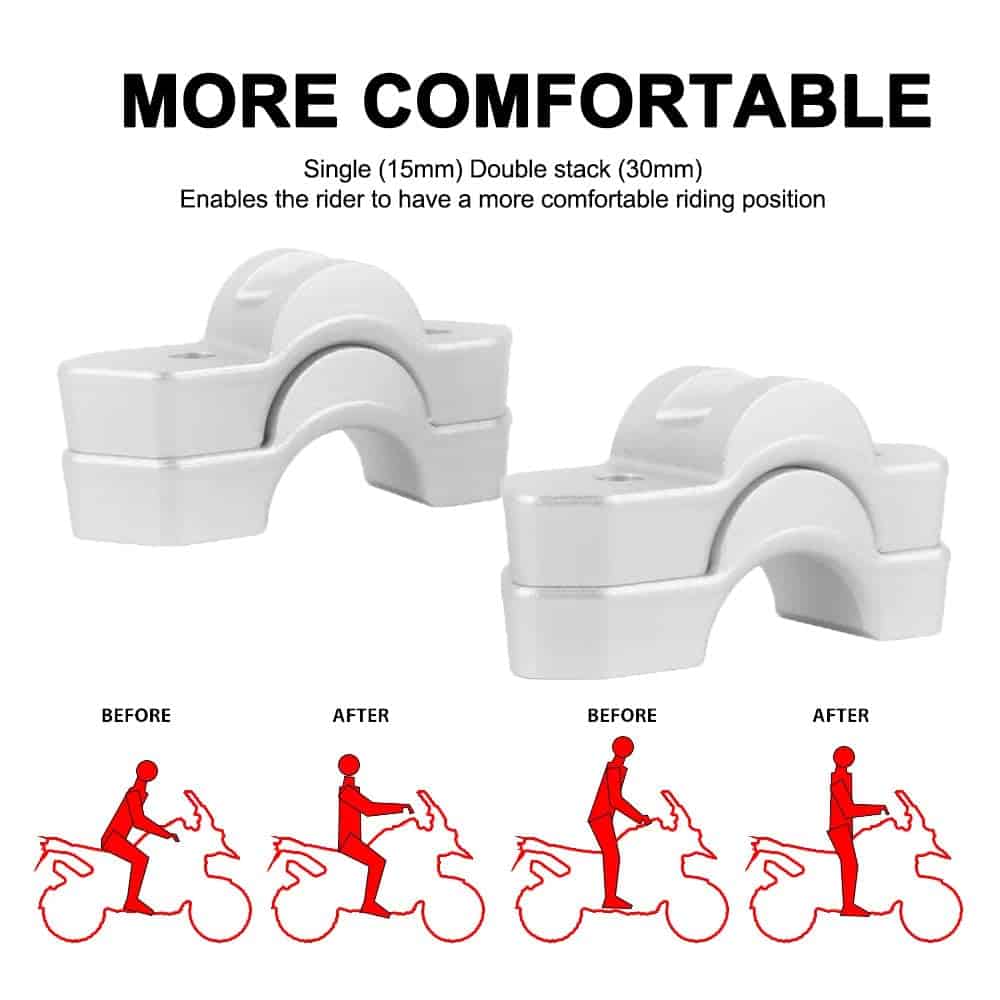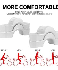 -Proporciona una posición de conducción más erguida y cómoda elevando los manillares tubulares de diámetro original.