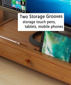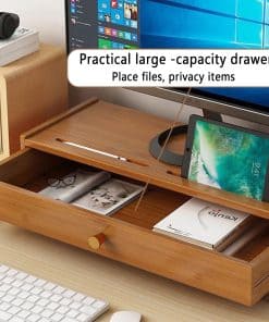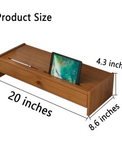 Detalles del ProductoColor: Nogal profundoMaterial: MaderaEstiloSimpleForma: RectánguloPeso5 lbTamaño del soporte del monitor20 x 8.6 x 4.3 pulgadasUsando este soporte de pantalla puede hacer que su pantalla tenga la mejor perspectiva, reducir la presión en el cuello, hombros y cuello.El soporte de pantalla hecho de bambú puro es más resistente y duradero que otros materiales.El atractivo retro de nogal profundo hace que su escritorio sea más atractivo, adecuado para el escritorio y la pared de fondo de cualquier color.En la parte superior del soporte hay dos ranuras, que se pueden colocar en bolígrafos, teléfonos móviles, tabletas y otros artículos.El soporte de pantalla también diseñó un cajón de gran capacidad para colocar tus artículos portátiles, como teléfonos móviles, carteras, llaves, etc.,Y también puedes almacenar tus archivos personales para ayudarte a ahorrar tiempo al buscar suministros de oficina, mantener el escritorio limpio y mejorar la eficiencia laboral. Esencia Si no estás satisfecho con nuestros productos o servicios, contáctanos antes de dejar un comentario. Cualquier pregunta que tengas será respondida por correo electrónico dentro de las 24 horas y se te dará una resolución satisfactoria.