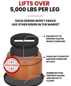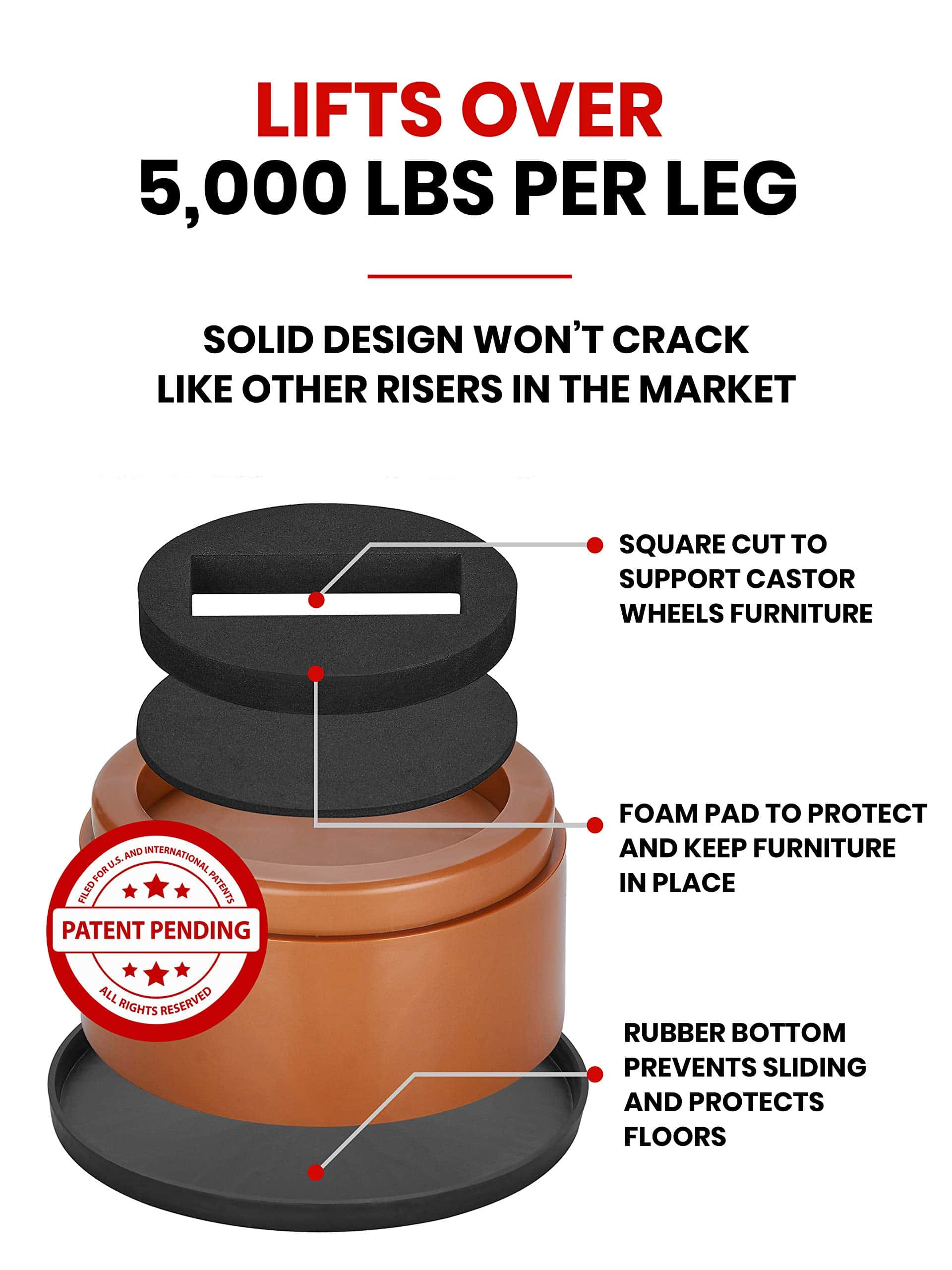 Eleva tus camas, sofás, escritorios, mesas y sillas con este elevador redondo de iPrimio. Con una altura de 2 pulgadas, soporta más de 5,000 libras, lo que lo hace ideal para cualquier mueble. La almohadilla antideslizante de espuma evita que la cama se deslice, proporcionando una mayor seguridad y estabilidad. Disponible en un elegante color marrón para combinar con cualquier decoración en tu hogar.