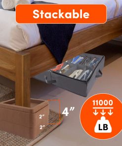 Estos elevadores de cama resistentes de 2 pulgadas pueden levantar tu cama a 2 pulgadas o 4 pulgadas (cuando se apilan en 4 pulgadas), agregan la altura extra que tu cama necesita y proporcionan espacio de almacenamiento adicional debajo de la cama, permitiéndote apilar desechos o contenedores de almacenamiento, y facilitando la limpieza del fondo de tu cama y manteniendo la parte inferior de tus muebles libre de polvo y suciedad. La estructura en forma de panal en la parte inferior de cada elevador de muebles mejora la estabilidad y garantiza un rendimiento antideslizante, asegurando que tus muebles se mantengan en su lugar de forma segura, ya sea un sofá o una mesa. Adecuados para elevar todo tipo de muebles, incluidas camas, sofás, mesas, sillas, etc., y proteger tus muebles y suelos de daños, compatibles con la mayoría de tamaños de muebles, la altura ajustable de los elevadores de muebles también ayuda a mejorar la calidad del sueño y ayuda a aquellos con dolor de espalda.