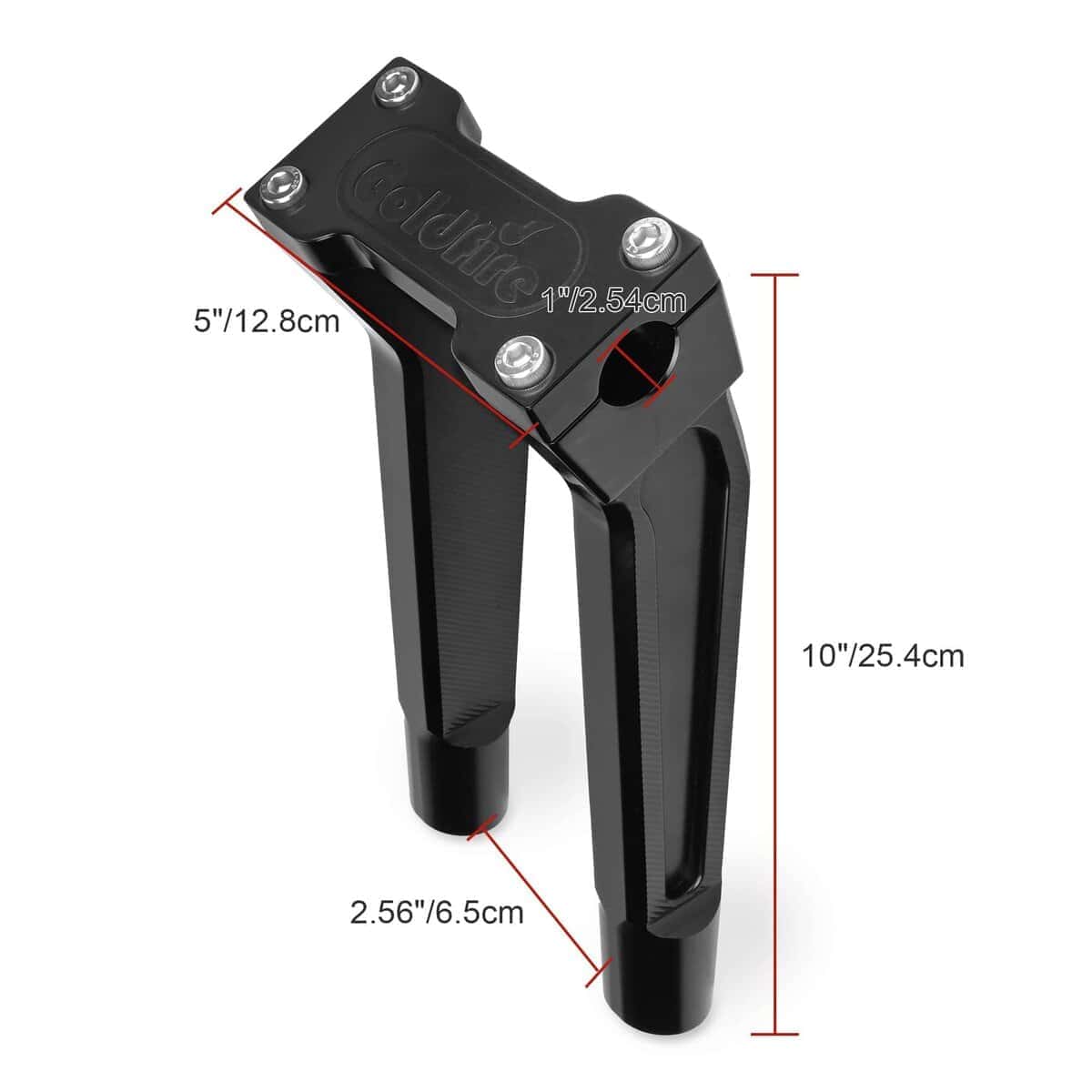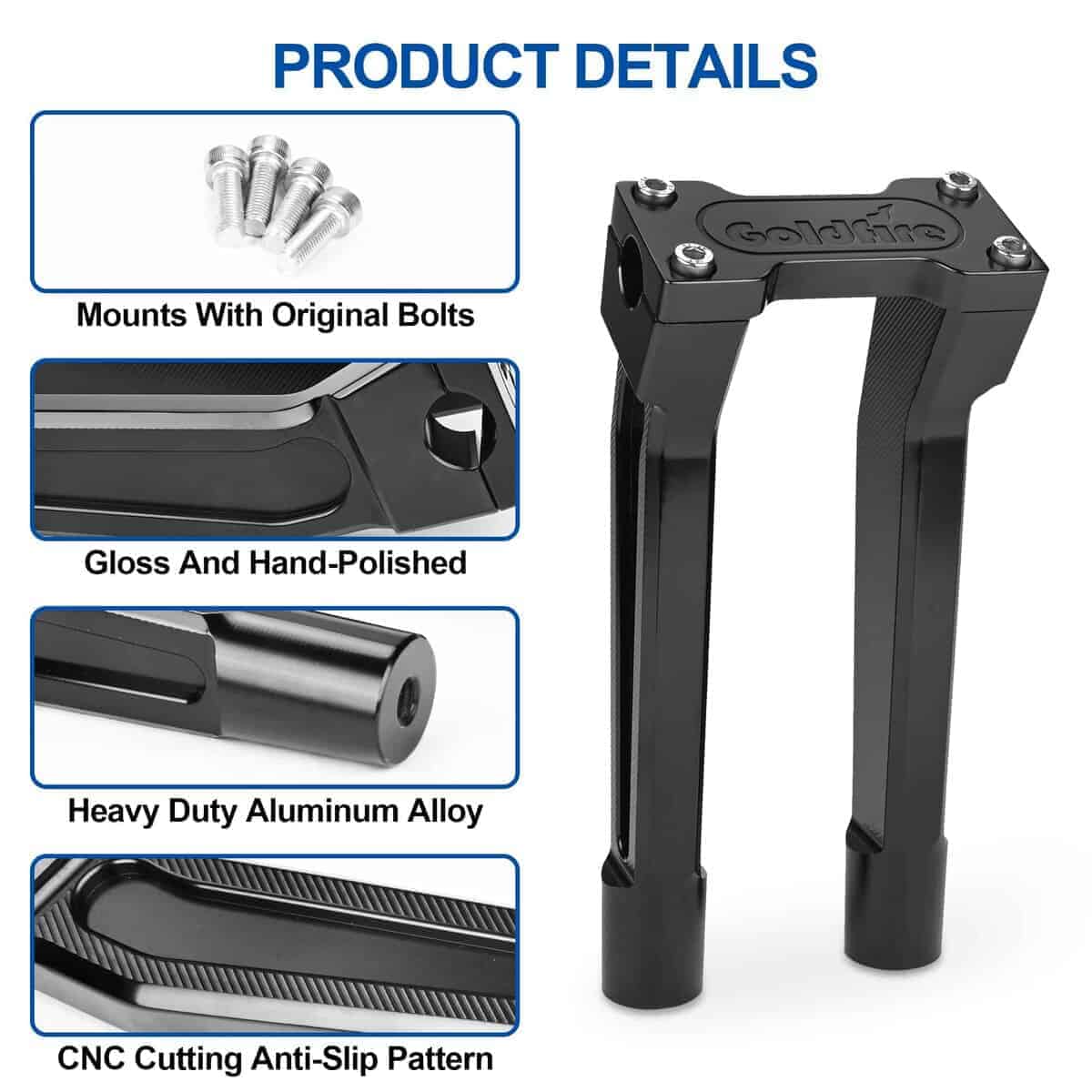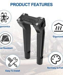 Elevadores de Manillar Retráctiles para Motocicleta Harley, Hutexico 1 pulgada de Aluminio Manillar Alto Elevador con Abrazadera Superior de una Pieza para Sportster Dyna Road Glide FXLRS. Asegure una compatibilidad fácil y un aspecto elegante con nuestro elevador retráctil de manillar de motocicleta. Diseñado para la mayoría de las motocicletas Harley y con una zona de sujeción de 1″, funciona perfectamente con manillares estándar de 1″. Los agujeros de montaje del elevador de 3 1/2 de centro a centro y el agujero de la base roscada para los pernos de 1/2″ 13 facilitan la instalación (los pernos no están incluidos). El paquete incluye elevadores de manillar con una abrazadera superior de una sola pieza y 4 tornillos de montaje sin manual de instrucciones para una configuración sin problemas. Nuestro resistente elevador de manillar, diseñado para motocicletas Sportster, cuenta con una construcción de aluminio billet mecanizado CNC de alta resistencia. La abrazadera superior de una sola pieza CNC mejora la resistencia, la dureza y la seguridad en comparación con las alternativas de hierro. El interior del tubo del manillar presenta un patrón antideslizante cortado con CNC para mayor estabilidad. Los tornillos de montaje colocados con precisión aseguran un ajuste perfecto, mejorando la adaptabilidad a varios accesorios de tornillo. Nuestros elevadores de patada de motocicleta ofrecen un alivio instantáneo a los conductores al brindar 10 pulgadas de elevación y aproximadamente 1-1/2 pulgadas de retroceso. Al acercar los manillares al conductor, la dirección y el control mejoran significativamente. Este ajuste estratégico reduce el estrés y alivia el dolor comúnmente sentido en el cuello, la espalda y los hombros. Una alternativa más ergonómica a los elevadores de manillar rectos, nuestro elevador retráctil garantiza una experiencia de conducción más cómoda. Nuestras abrazaderas de elevador de manillar presentan un diseño a prueba de agua para protección contra los elementos. Fáciles de limpiar con un paño húmedo, cuentan con un elegante acabado recubierto de polvo negro brillante, pulido a mano para resistir el óxido. El corte único de franjas CNC agrega estilo, mientras que la ausencia de herrajes visibles mejora la apariencia personalizada. Diseñado para eliminar virtualmente el deslizamiento del manillar, asegurando un agarre seguro, incluso con manillares más altos. Diseñado para mejorar la rigidez y la estabilidad del manillar, nuestro kit de abrazadera de elevador de manillar de motocicleta garantiza una instalación sencilla para una experiencia de bricolaje. Respaldado por una garantía de un año a partir de la fecha de compra, cualquier problema con el producto será atendido rápidamente por nuestro equipo. Su satisfacción es nuestra prioridad y nos comprometemos a proporcionar soluciones rápidas.