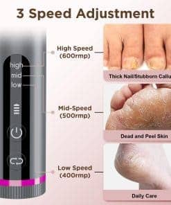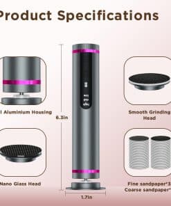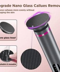 Este eliminador de callos eléctrico para pies es la solución perfecta para mantener tus pies suaves y saludables en casa. Con un motor sin escobillas premium y una caja de engranajes de metal, este exfoliador de pies proporciona una potencia potente y control preciso de la velocidad para una experiencia de cuidado de pies cómoda y suave. Además del papel de lija tradicional, el eliminador de callos también incluye una cabeza de Nano-Glass innovadora que ayuda a eliminar callos y piel muerta de manera uniforme sin dañar la piel. La batería de gran capacidad ofrece hasta 7 horas de uso inalámbrico después de una carga rápida de 3 horas, y la pantalla LED te permite monitorear fácilmente el nivel de la batería y la velocidad. Con 3 velocidades ajustables, 60 piezas de papeles de lija reemplazables y un elegante cuerpo de aleación de aluminio, este exfoliador de pies es el regalo perfecto para hombres y mujeres que desean pies suaves y hermosos sin salir de casa.
