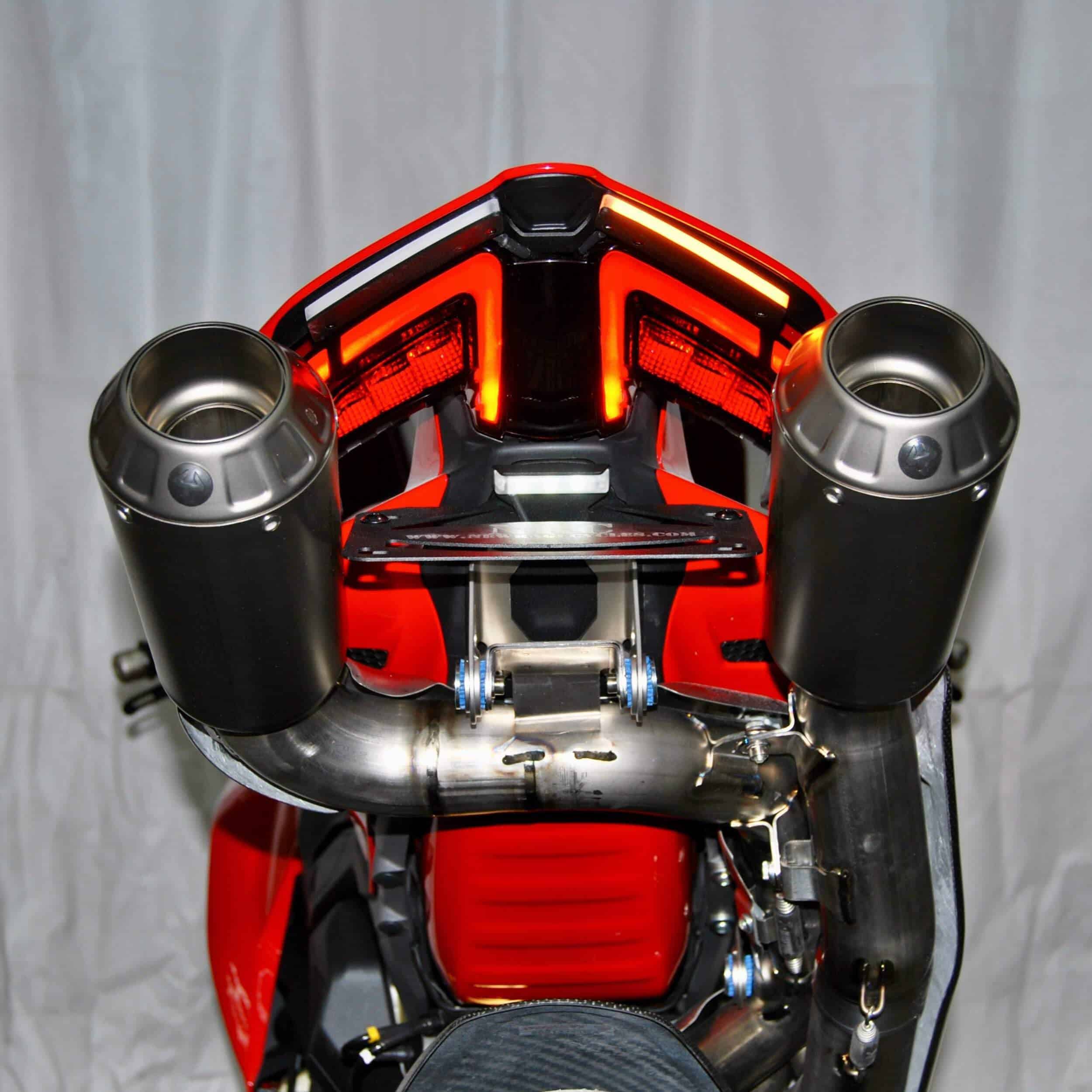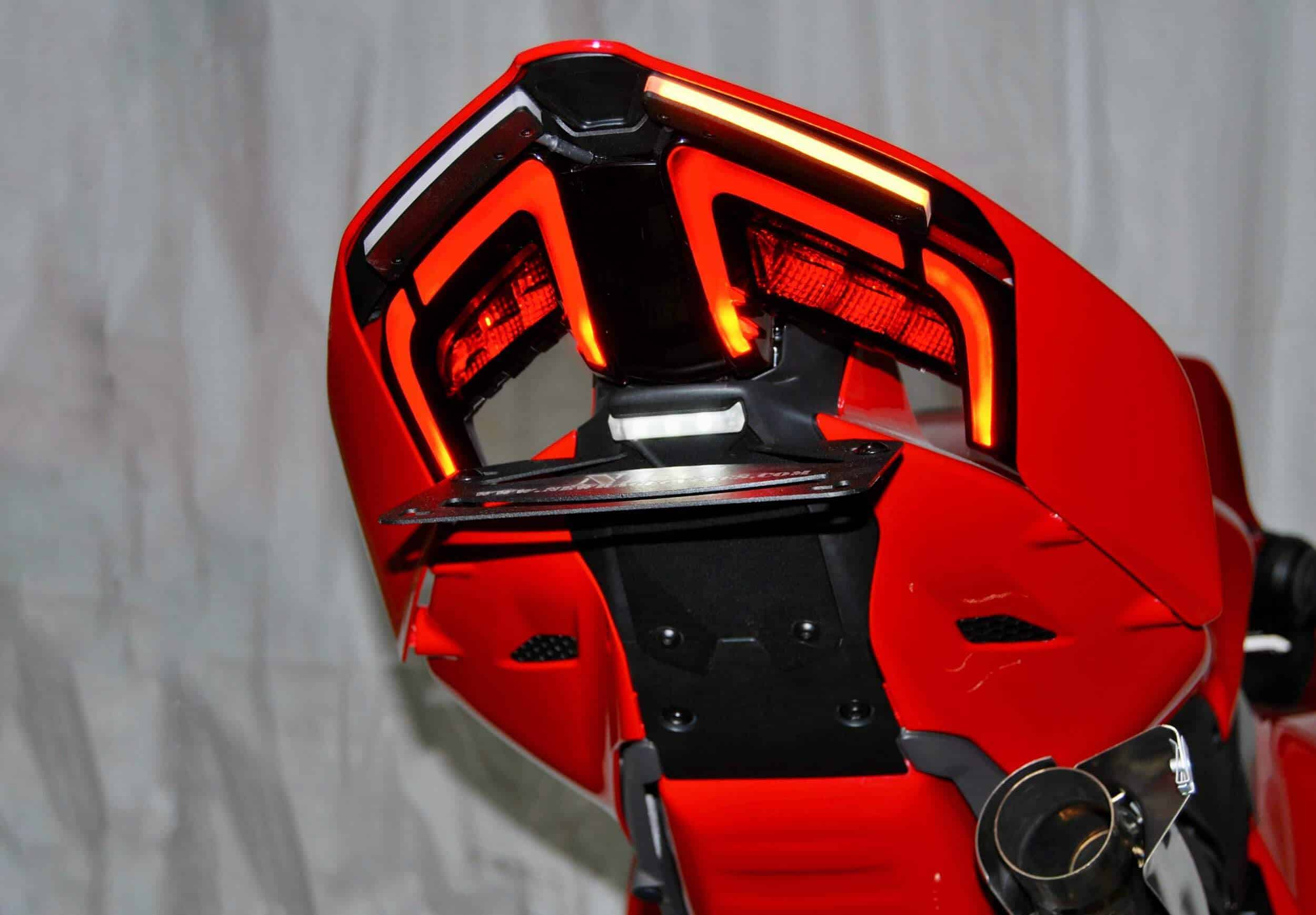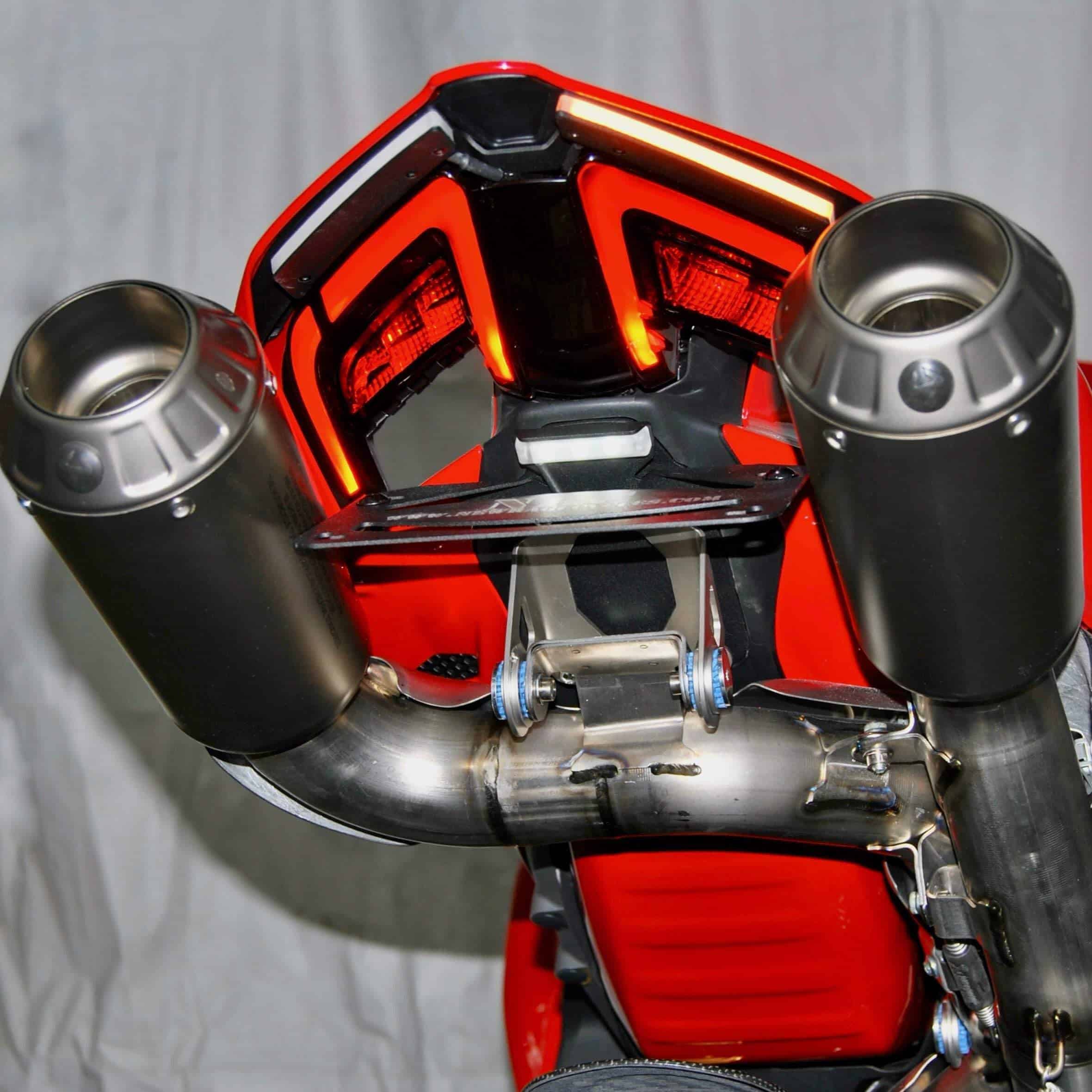 Eliminador de guardabarros de New Rage Cycles para la Ducati Panigale V4 / V4 Streetfighter del 2025. Se vende en posición estándar y oculta, también hay una opción para el Akrapovic. Este eliminador de guardabarros es plug & play, lo que te ahorra tiempo y dinero en la instalación, permitiéndote enchufar y salir a rodar sin necesidad de resistencias ni componentes adicionales. Los LED de este producto son los más brillantes del mercado. Hecho en las instalaciones de NRC en Nueva York, este eliminador es una excelente opción para tu Ducati Panigale V4 / V4 Streetfighter (2025-Presente).
