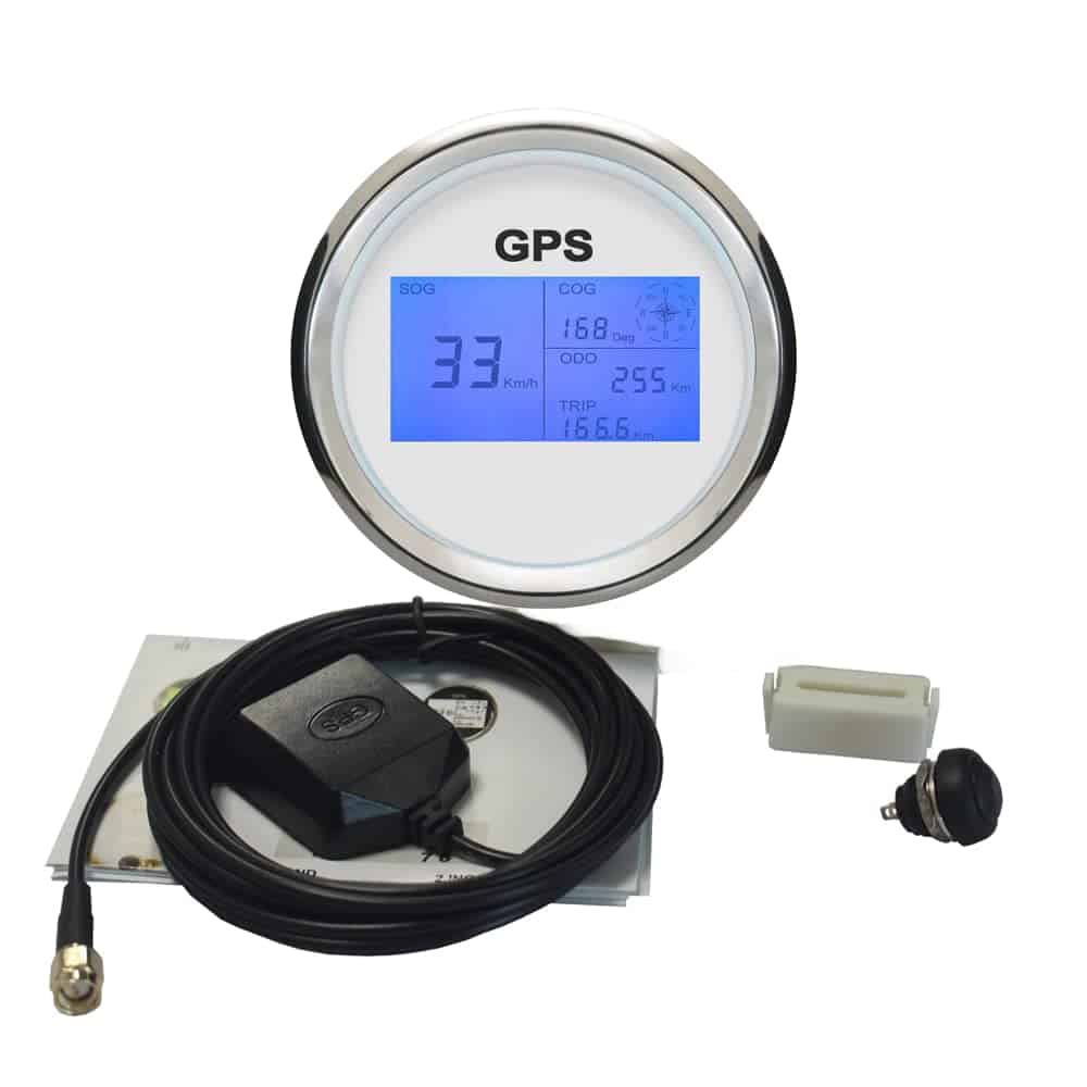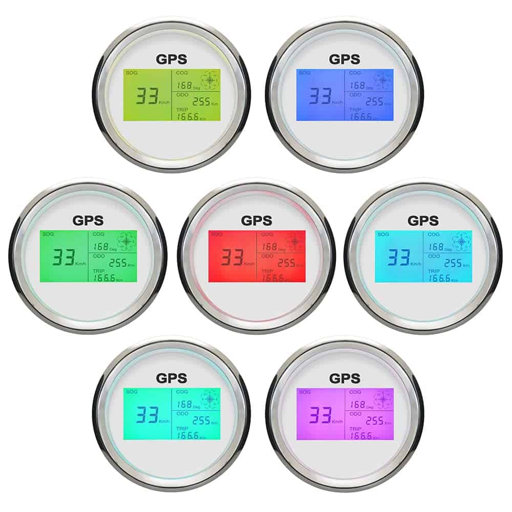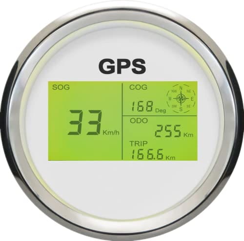 Características del Producto: -Adecuado para todos los vehículos, embarcaciones marinas y vehículos todoterreno -La señal proviene directamente del receptor de señal satelital (Antena GPS), no necesita otro sensor de velocidad. -El medidor tiene ventajas de alta precisión, rápida confirmación de ubicación y corto tiempo de arranque. -Grado impermeable y a prueba de polvo IP67 -Protección de polaridad inversa y rendimiento anti-vaho -Sin drift estacionario -Motores paso a paso utilizados para una gama completa de medidores de pasos, gran característica con su menor consumo de energía, mayor vida útil, mayor precisión, etc. Datos Técnicos: -Dimensión de montaje: 85mm (3-3/8″) -Rango de indicación: 0~999 (MPH, Nudos, Km/h ajustable) -Unidad de cambio entre MPH (Mi), Nudos (NMI) y Km/h (KM) botón trasero -Viaje y Odómetro ajustables, Rango de kilometraje: 0-999999 (Mi, NMI, KM disponible) -Contador de viaje -Función indicador de brújula -7 colores de luz de fondo disponible 1. Encienda primero el velocímetro. Presione y mantenga presionado el botón en la parte trasera o el botón externo durante 5-6 segundos, la luz de fondo cambiará, luego sueltes el botón. 2. Presione y mantenga presionado el botón nuevamente durante 5-6 segundos para cambiar a otros colores de luz de fondo -Voltaje de funcionamiento: 12V / 24V -Compensación del Odómetro de la zona ciega GPS -Alarma de zumbador de exceso de velocidad (Valor ajustable) -Temperaturas de funcionamiento: -40 a 85 C -Modo de operación: Pantalla LCD, motor paso a paso Paquete incluido: 1x Velocímetro GPS 1x Antena GPS 1x Enchufe de múltiples clavijas 1x Instrucciones de instalación