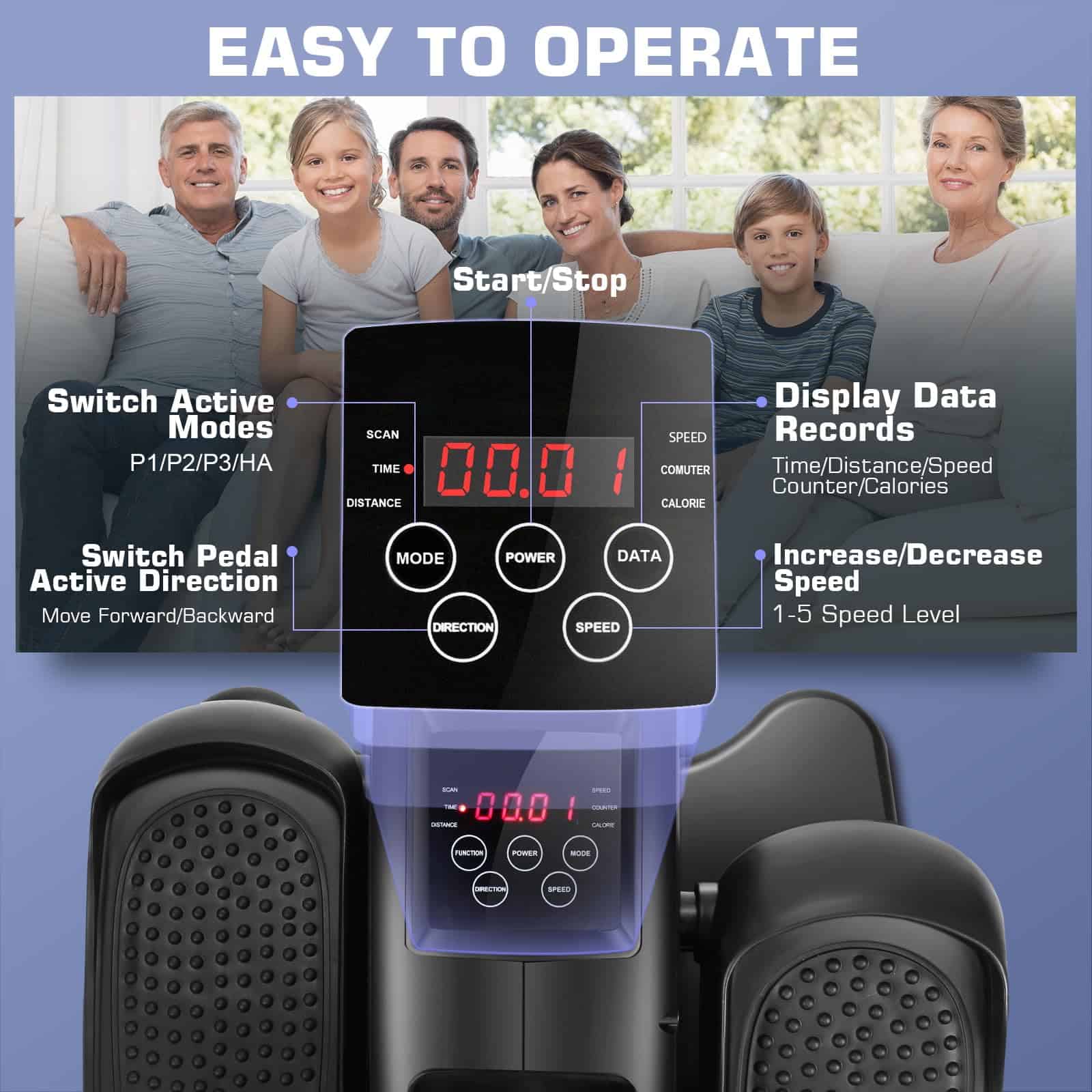 1. Monitor de pantalla integrado: Supervise sin esfuerzo sus datos clave de entrenamiento a través de la pantalla LCD de nuestra máquina elíptica ANCHEER bajo escritorio. Realiza un seguimiento del tiempo, velocidad, conteo, calorías y más. Con su práctica función de escaneo, puede recorrer cómodamente todas estas métricas durante el entrenamiento, obteniendo una visión completa de su progreso y comprendiendo mejor la respuesta de su cuerpo. Experimente un entrenamiento completo a su conveniencia, ya sea en casa u oficina.
