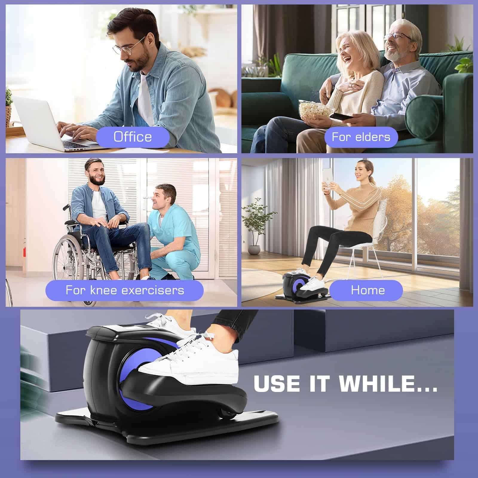 3. Silencioso y portátil: Diseñado específicamente para ser silencioso como un susurro, puede disfrutar de la comodidad de hacer ejercicio sin perturbar a quienes lo rodean. El pedal ejercitador sentado es portátil y fácil de mover. No requiere ensamblaje.