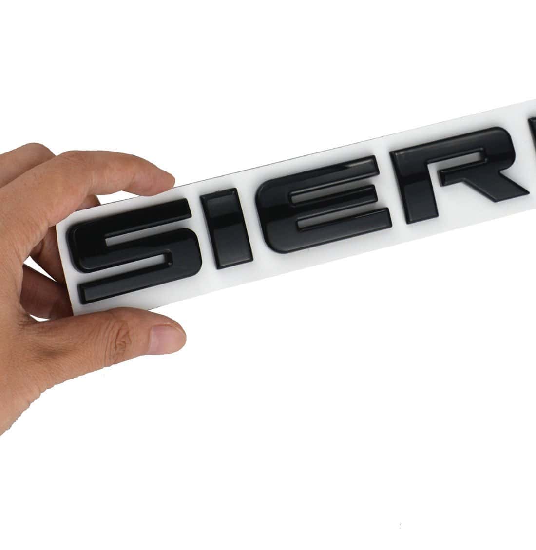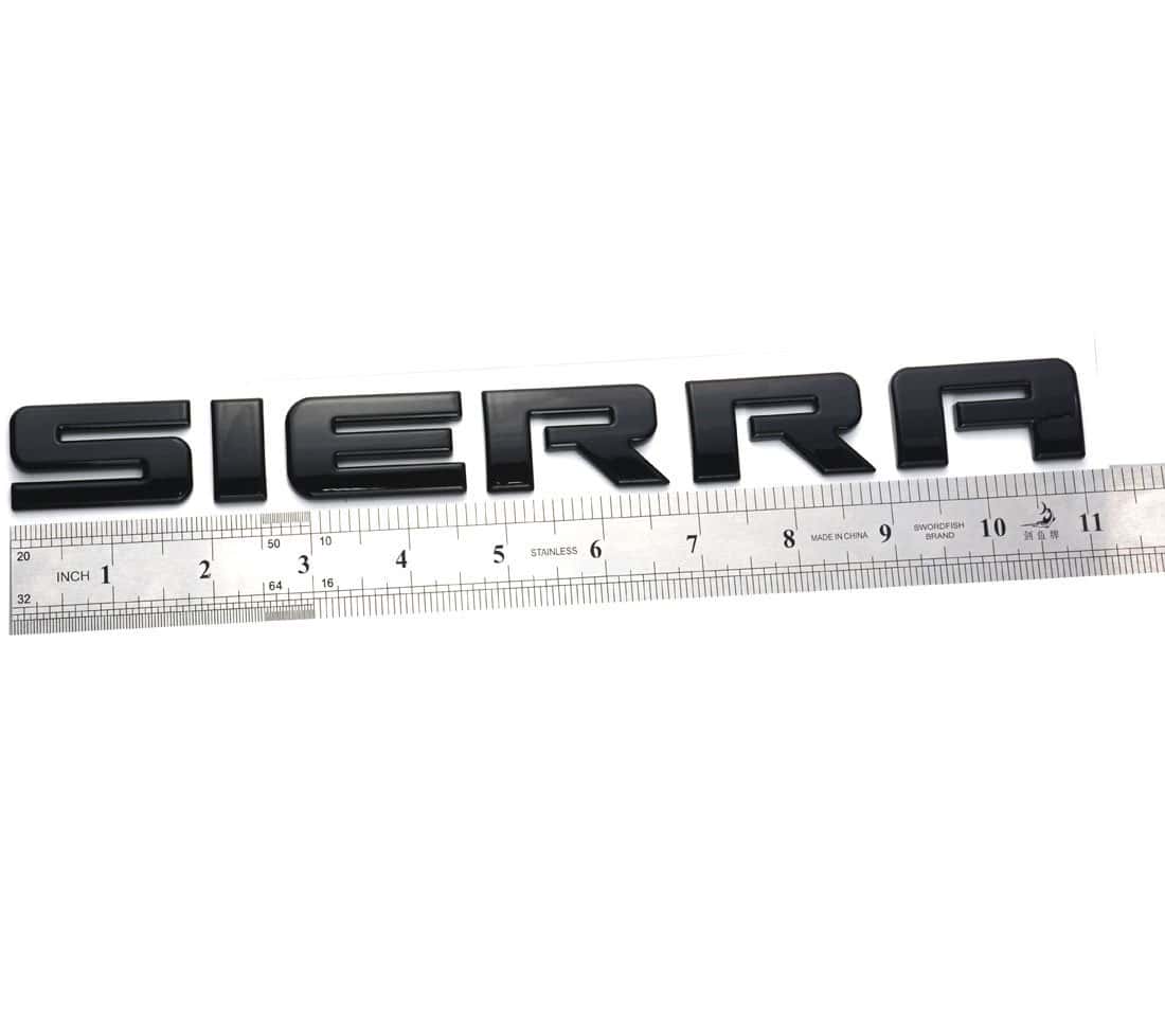 Emblema de letras Sierra de alta calidad en negro brillante. Cada emblema viene con respaldo de cinta 3M para una instalación sencilla. El tamaño del emblema es de 11″ x 1.1″. Está fabricado con material ABS duradero y resistente. El paquete incluye 2 emblemas SIERRA para tu vehículo. Estos emblemas son 100% resistentes a la intemperie, lo que los hace ideales para uso en exteriores. Añade un toque de estilo a tu Sierra con estos elegantes emblemas.