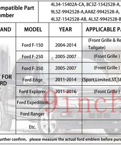 Emblema iluminado LED de ahorro de energía, duradero y resistente a las vibraciones, con haces de luz brillantes y estables. Modelo general utilizado en iluminación de automóviles que puede adaptarse a todo tipo de vehículos. No se incluye instrucciones, se recomienda instalación profesional. Asegúrese del tamaño antes de realizar el pedido: 9 pulgadas x 3.5 pulgadas para Ford 04-14 F150 F250 F350, 11-14 Edge, 11-16 Explorer, 06-11 Ranger.