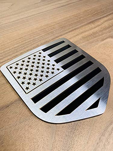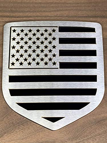 Emblema de portón trasero 300 Industries para Dodge Ram 1500/2500/3500 del 2009 al 2018 con diseño de Bandera Americana en plateado sobre negro. Fabricado en Estados Unidos con los más altos estándares de calidad para resistir los elementos y garantizar una vida útil larga. Personaliza tu vehículo con el diseño que mejor te represente, ya sea para hacer una declaración audaz o añadir un toque de patriotismo. Fácil de instalar, con adhesivo para una aplicación sencilla en la puerta trasera, guardabarros, puertas u otras ubicaciones deseadas. Resistente a la intemperie para mantener su apariencia vibrante con el tiempo. Mejora la estética de tu camioneta y muestra tu orgullo americano con este emblema de calidad.