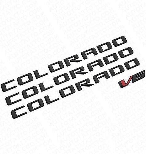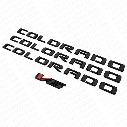 4Pc 2015-2022 Colorado V6 Body Fender Tailgate Side Emblems 3D Badge Logo Truck Nameplate Sticker Letter 85594766 Replacement For Colorado. Juego de 4 emblemas para la carrocería de la Colorado V6 2015-2022 en negro mate. Fabricados con material ABS de alta calidad y 100% impermeables. Autoadhesivos, fáciles de colocar. ¡Calidad garantizada por AIMOLL!