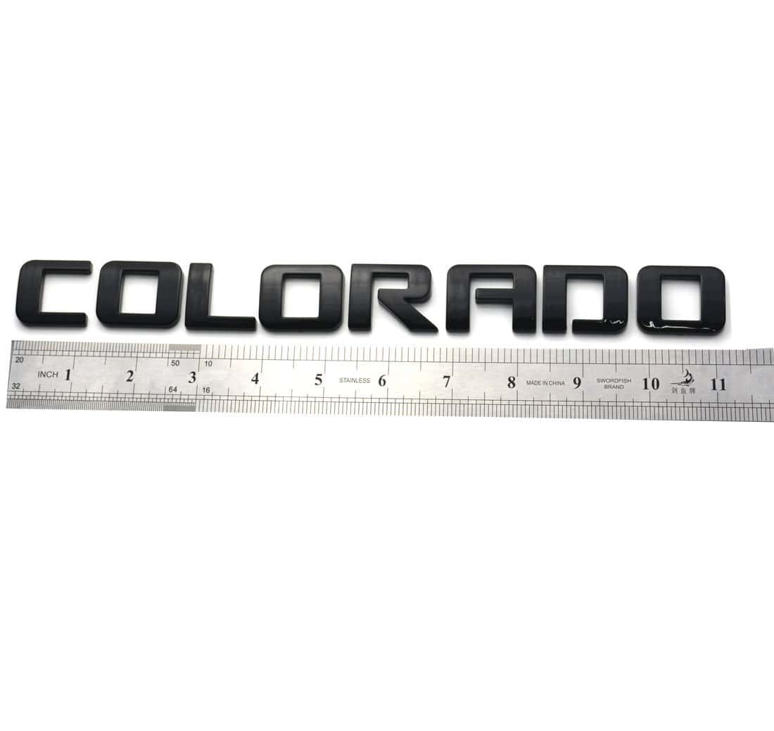 Emblemas de letras Colorado de Aimoll, un conjunto de 3 piezas de adhesivos brillantes en 3D diseñados para Gm Silverado en color negro. Estos emblemas vienen respaldados con cinta adhesiva 3M para una instalación rápida y sencilla. Con un tamaño de 11 pulgadas de largo y 1.1 pulgadas de ancho, están fabricados con material de alta calidad de ABS. El paquete incluye 3 emblemas COLORADO. Estos emblemas son 100% resistentes a la intemperie, lo que los hace ideales para uso exterior en tu vehículo.