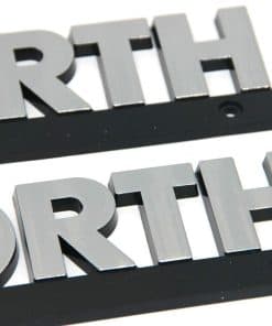 Placa con nombre de Kenworth con acabado cromado cepillado. Plástico