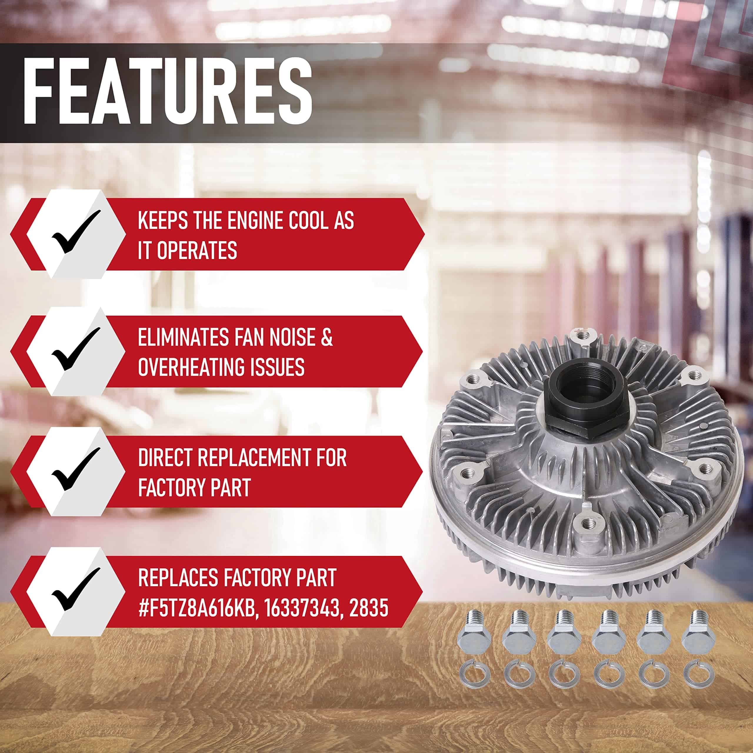 Compatible con reemplazo para camiones Ford 7.3L Powerstroke – E-350 Econoline 7.3L 1995-1997 | E-350 Econoline Club Wagon 7.3L 1995-1997 | Econoline Super Duty 7.3L 1996-1997 | F Super Duty 7.3L 1993.1995-1997 | F-250 7.3L 1994-1996 | F3507.3L 1994-1997 | F59 7.3L 1994-1997. Reemplaza a las piezas F5TZ8A616KB, 16337343, 2835 comúnmente encontradas en los populares modelos E-350 Econoline, F Super Duty, F-250 incluyendo los años 93, 94, 95, 96, 97. Este embrague de ventilador puede ser fácilmente ubicado adjunto al ventilador entre el motor y el radiador y puede ser removido accediendo al frente del motor. Ajuste OEM, calidad, acabado – Aunque no es una pieza OEM genuina, es un reemplazo directo y aparecerá, se ajustará y funcionará como la pieza de fábrica. Si está experimentando ruidos extraños provenientes del ventilador del radiador, el aire acondicionado no enfría hasta que el vehículo ha estado funcionando por un tiempo, el vehículo se está sobrecalentando, arrojando códigos de luz de chequeo de motor o simplemente no puede detener el ventilador de girar cuando está detenido, es posible que tenga un problema con su embrague de ventilador. Este embrague de ventilador electrónico para E-350 Econoline Club Wagon, F Super Duty, F-250 o F59 viene completo con una garantía. Si la pieza falla en su vehículo, simplemente contáctenos para un reemplazo. Ahorre cientos de dólares en piezas y mano de obra y aproveche de nuestra garantía.