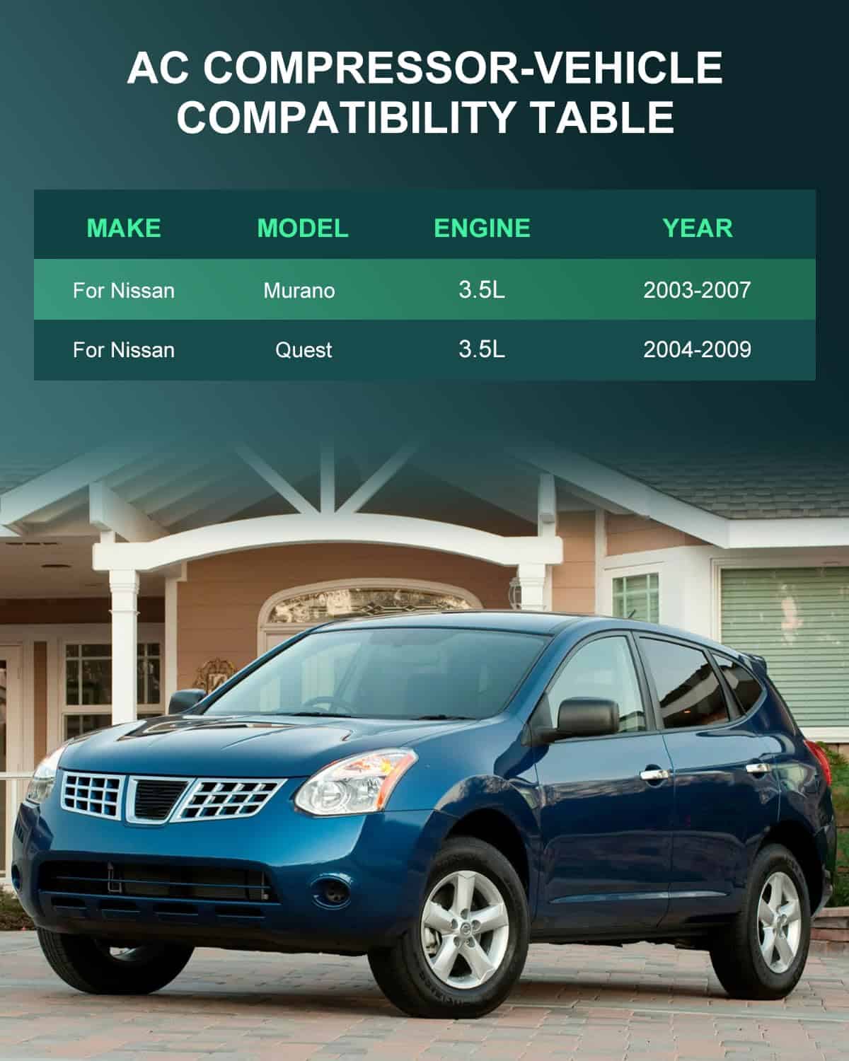 Número de piezas CO 10863JC, 926005Z010, 926005Z01A, 926005Z01B, TEM254568, 2011281, 67465, TEM254568, 2011281, 10000649, 10346421, DW67465, 68465, 98909, 638779, 5512329 br/ Ajuste del compresor de A/C: br/ Para 2003-2007 N-issan Murano 3.5L br/ Para 2004-2009 N-issan Quest 3.5L br/ b b Paquete Incluido /b /b br/ como se muestra en la imagen–Compresor y embrague de A/C b /b br/