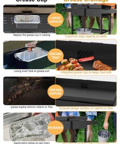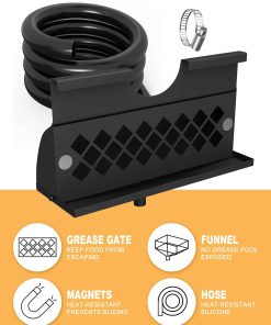 1. DISEÑO INNOVADOR El embudo de grasa Blackstone es la solución para cocinar sin interrupciones! Diga adiós a la molestia de vaciar el recolector de grasa Blackstone durante la cocción. El diseño de trampa de grasa cerrado para la parrilla Blackstone resuelve el problema de piscinas de grasa expuestas que tienden a atraer roedores y moscas. La compuerta de grasa trasera integrada funciona muy bien para salvar alimentos de pasar por los agujeros.