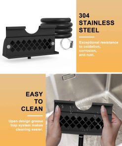 4. CALIDAD EXCEPCIONAL La trampa de grasa Blackstone está hecha de acero pesado recubierto de polvo y acero inoxidable 304 para una resistencia excepcional a la oxidación, corrosión y óxido. La manguera de silicona resistente al calor de 3.3 pies incluida garantiza que pueda manejar fácilmente grasas y aguas a alta temperatura de hasta 570 F. (NOTA: el cubo de grasa no está incluido).