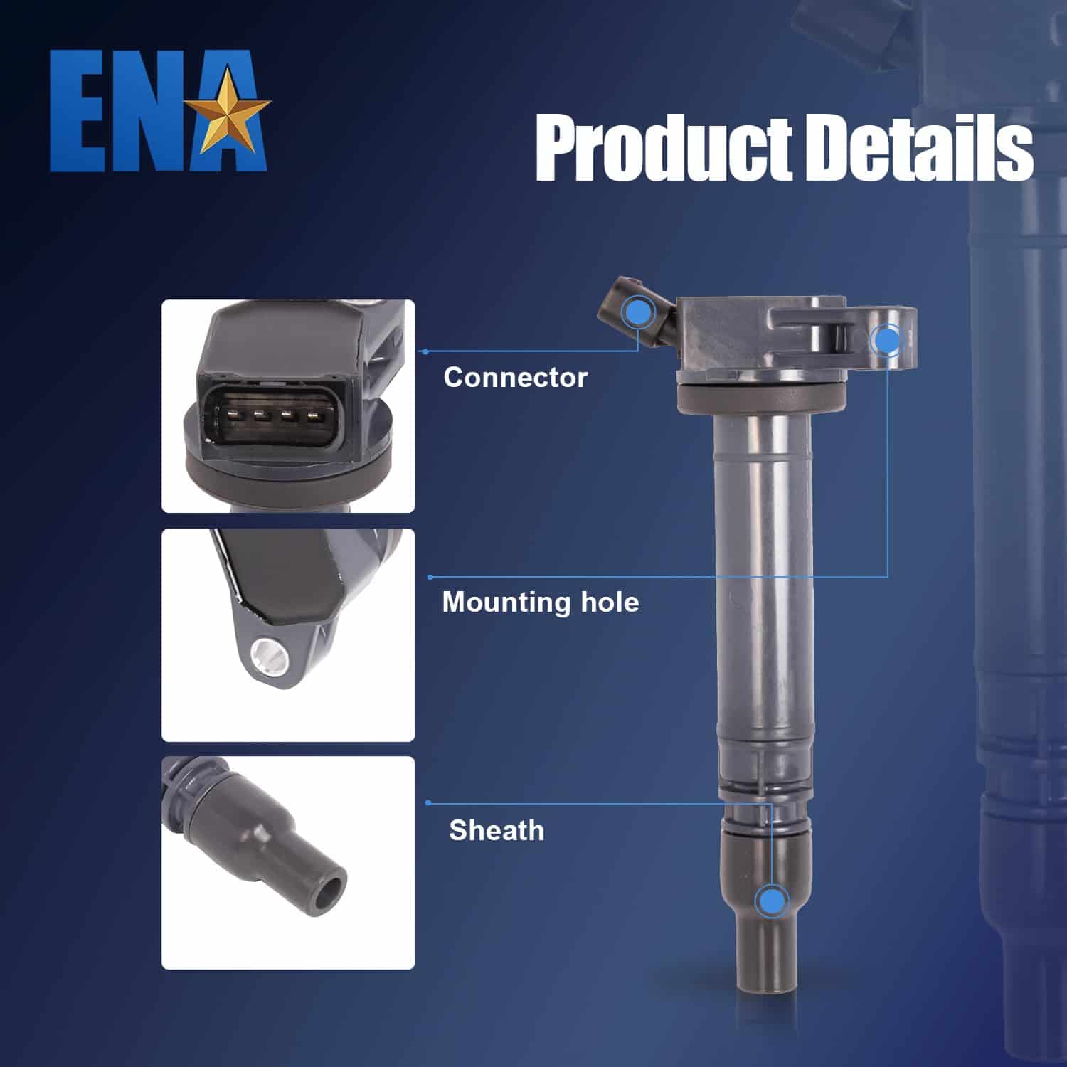 ENA ofrece un juego de 4 bobinas de encendido de alta calidad, diseñadas para ser compatibles con una amplia gama de vehículos Toyota, Lexus y Scion. Estas bobinas cuentan con un diseño plug-and-play, lo que permite una instalación fácil y rápida sin necesidad de herramientas especiales. Con referencia a los números C1596 UF507 5C1653 UF587 5C1653 UF630 90919A2003 9091902250 9091902256 90919A2005, estas bobinas son una solución confiable para restaurar el rendimiento óptimo del sistema de encendido de su vehículo. El juego de bobinas incluye 4 unidades, lo que le brinda un reemplazo completo y garantizado de calidad. Además, viene con una garantía de 12 meses para su tranquilidad. Con ENA, puede estar seguro de que está obteniendo un producto premium para su vehículo.