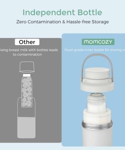 Además, la limpieza de la botella interior es sin problemas ya que puede limpiarse y esterilizarse en el lavaplatos de botellas de Momcozy. Puede llevar este enfriador de leche materna con facilidad donde quiera que vaya, atravesar la seguridad sin problemas y llevar su leche materna a bordo. Disfrute de la lactancia materna sin complicaciones mientras se desplaza, en el trabajo o mientras viaja sin la molestia de packs de hielo adicionales.