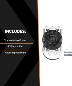 Este enfriador de transmisión viene con un ventilador eléctrico de ocho pulgadas que es perfecto para camiones de carga pesada y aplicaciones sobrealimentadas o turboalimentadas para garantizar que las temperaturas de la transmisión se mantengan bajas y que su vehículo funcione al máximo. Extienda la vida útil de su transmisión con el Kit de Enfriador de Transmisión de Alta Resistencia de Mishimoto. Está hecho con 100% de aluminio y está construido con tubos y aletas. El kit incluye un ventilador eléctrico de 8 pulgadas y equipo de montaje para instalación universal.