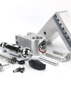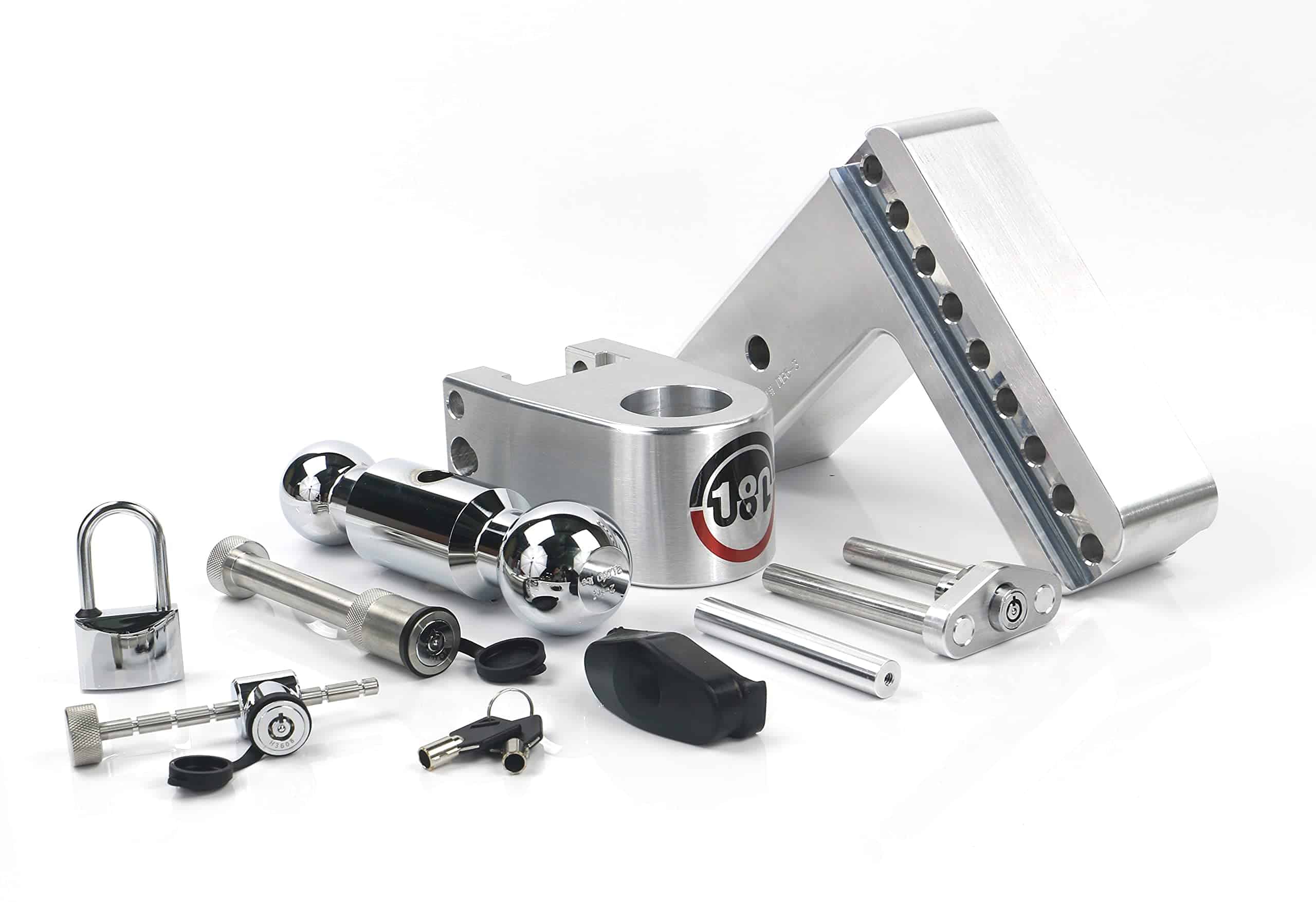 2. ENGANCHE DE BOLA AJUSTABLE DE 6″: enganche de 6″ de descenso y 7″ de elevación, ajusta en incrementos de 1″ para obtener el ajuste perfecto para la altura de cualquier remolque – Asegurado con un diseño de bloqueo antirrobo para proteger su enganche de remolque.